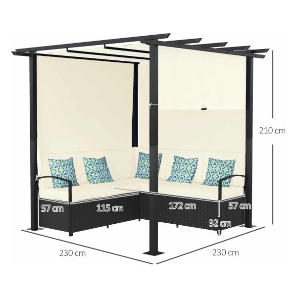 - Algemene afmetingen: 230L x 230B x 210H cm