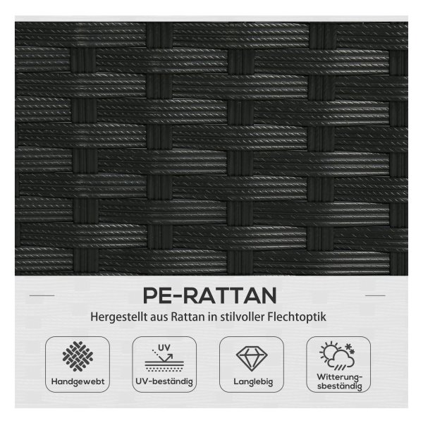 Let op: Deze tuinset is niet geschikt voor gebruik bij slecht weer, zoals regen, sneeuw of hagel. Zorg ervoor dat u de set beschermt tegen ongunstige weersomstandigheden om de levensduur te verlengen.