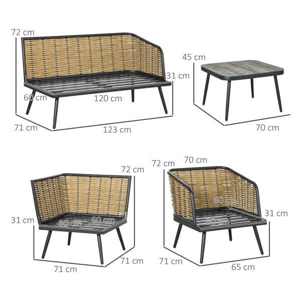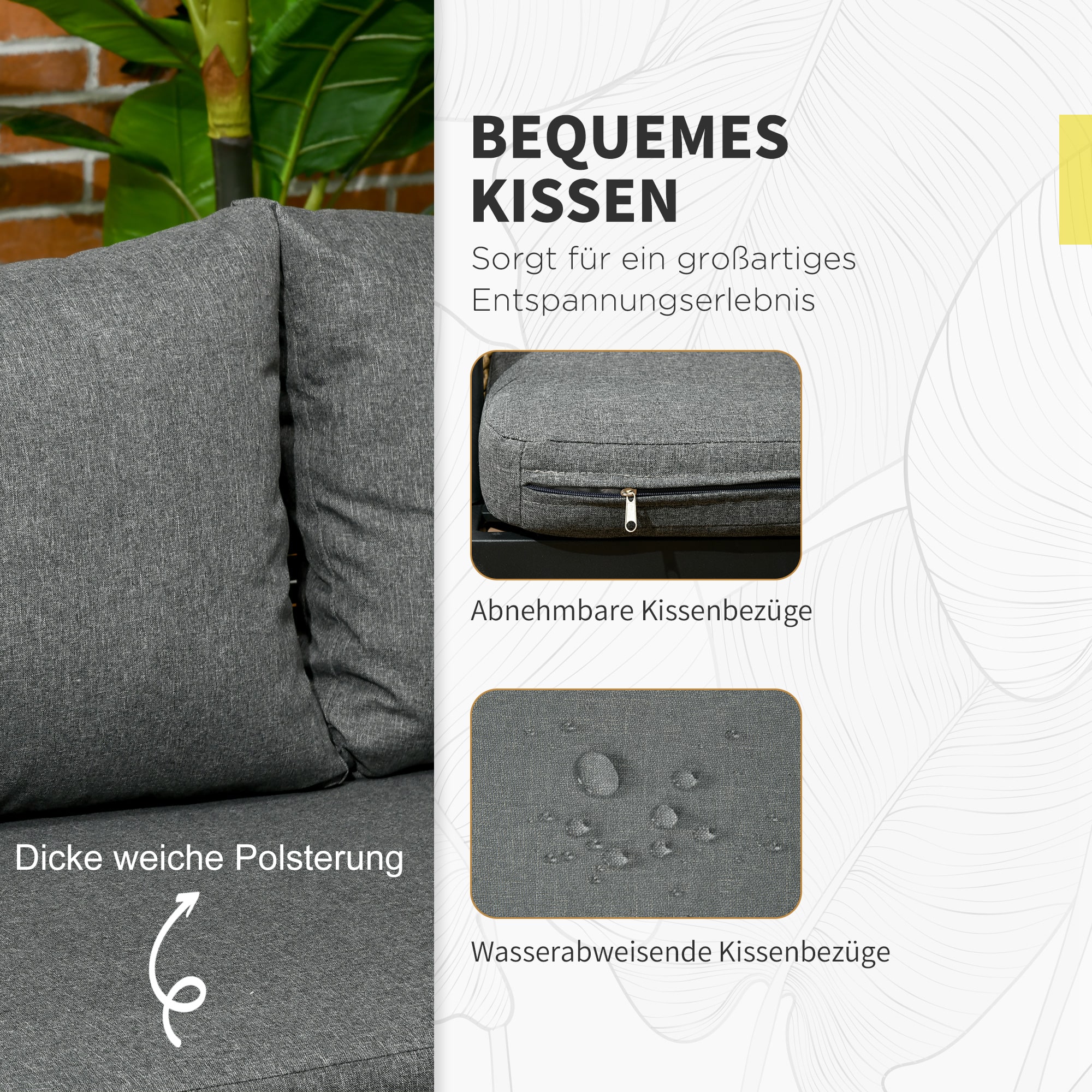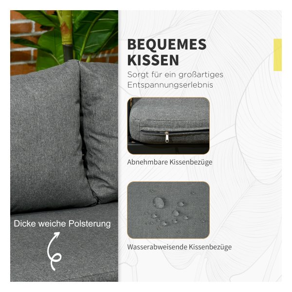 De tuinset wordt geleverd met zachte zitkussens en comfortabele rugkussens die eenvoudig te verwijderen en te reinigen zijn, waardoor je altijd kunt genieten van een frisse zitplek.