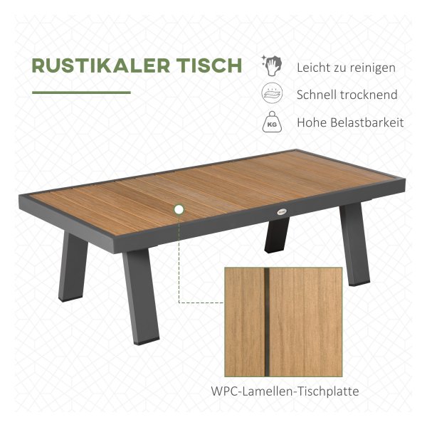 - Het gebruik van aluminium frame en hout-kunststof composietmateriaal zorgt voor stevigheid en duurzaamheid van de set