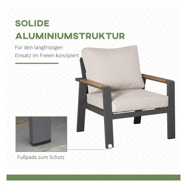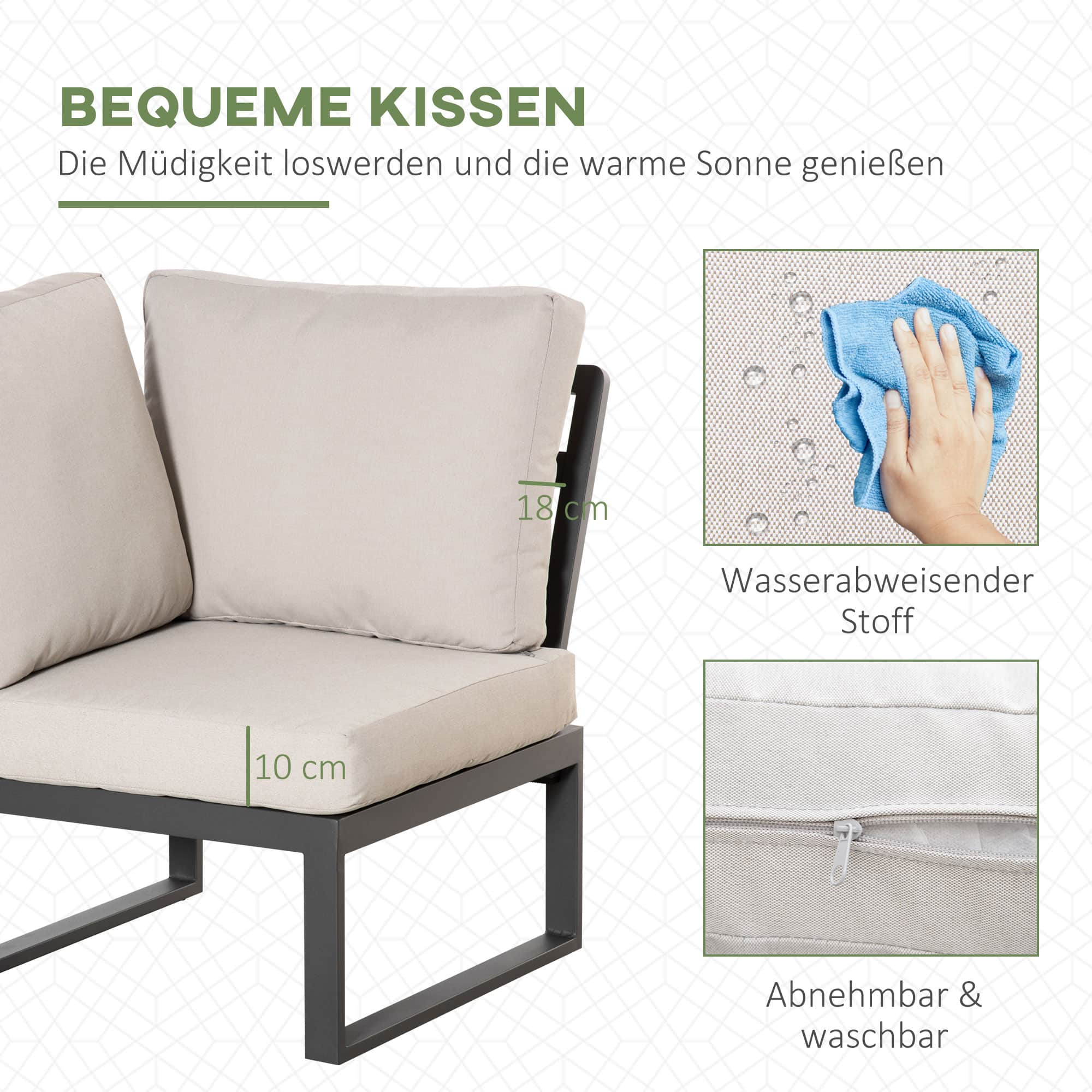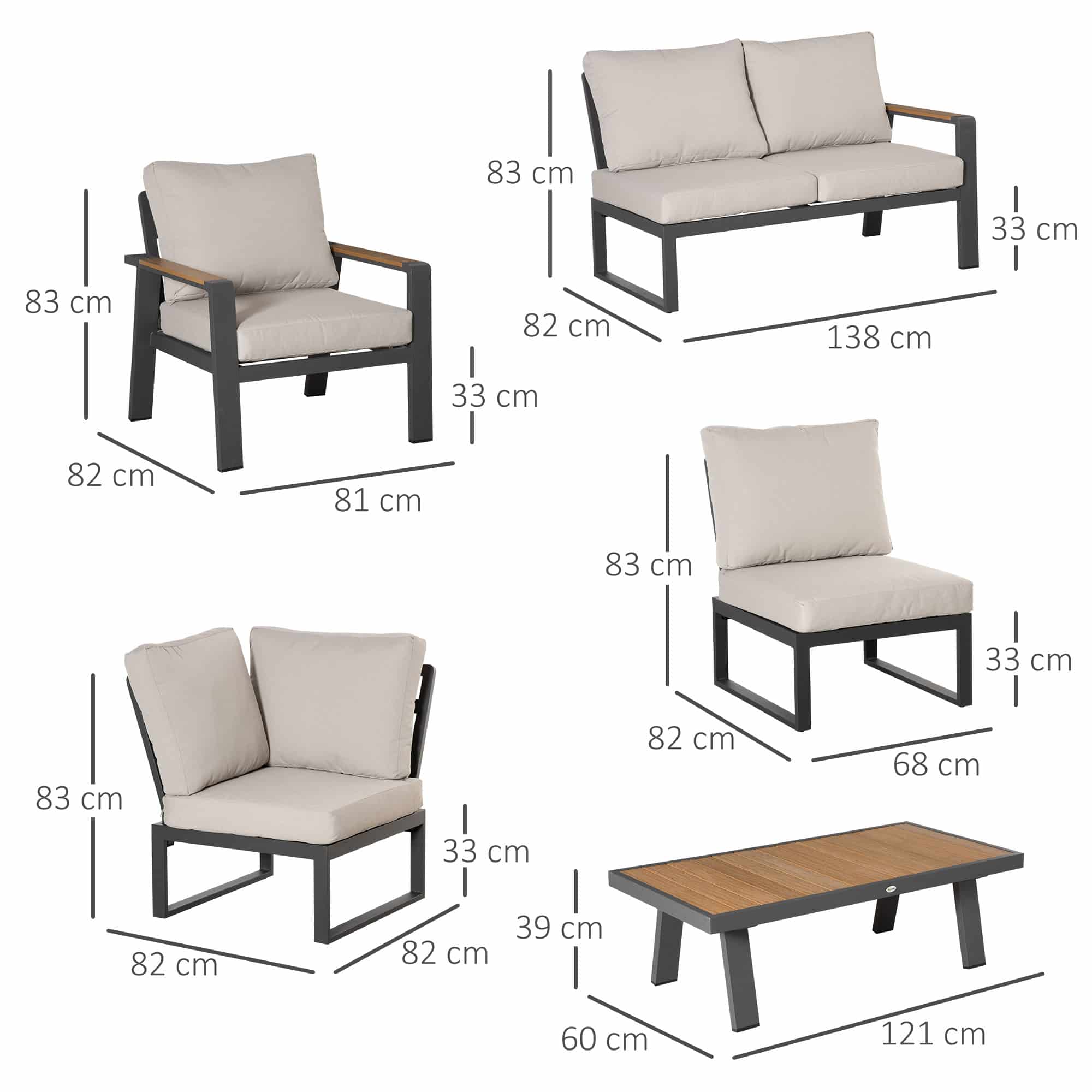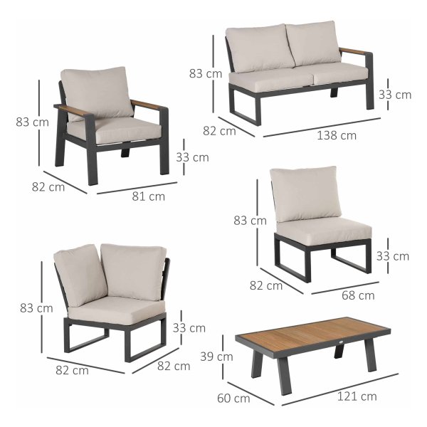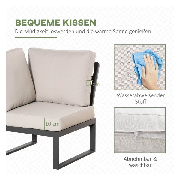 Verwen uzelf met onze exclusieve zesdelige tuinmeubelset van Outsunny en transformeer uw buitenruimte tot een prachtige plek om te ontspannen en te genieten. Het stevige aluminium frame zorgt voor stabiliteit en duurzaamheid, terwijl het stijlvolle ontwerp een perfecte toevoeging is aan uw buitenruimte. Geniet van ultiem zitcomfort terwijl u uw dag comfortabel afsluit of diepere gesprekken voert tijdens gezellige bordspellen met familie en vrienden.