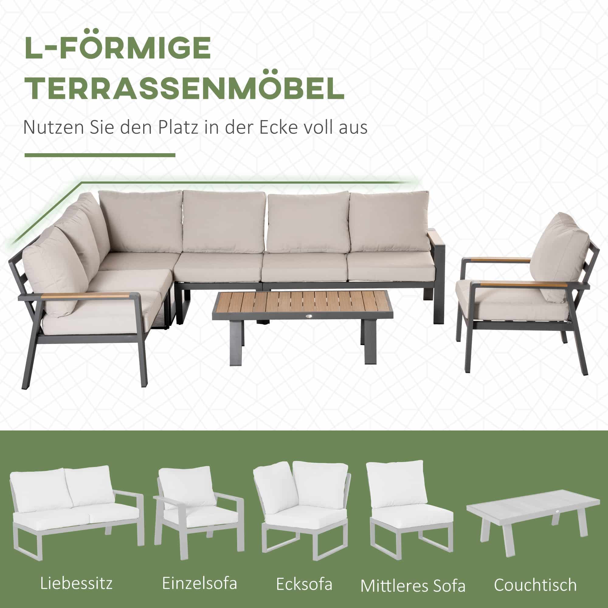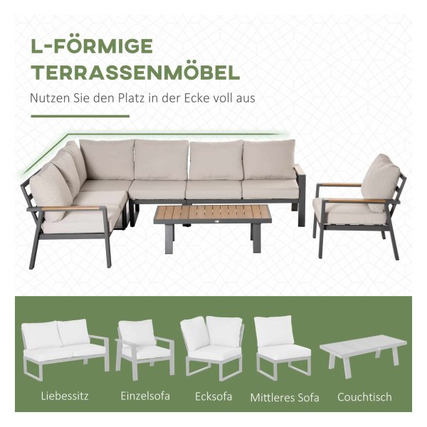 - Compact L-vormig ontwerp, perfect voor balkons, tuinen of terrassen