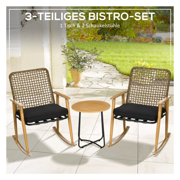 - Bestaat uit twee schommelstoelen en een bijzettafel in een stijlvolle grijze kleur.