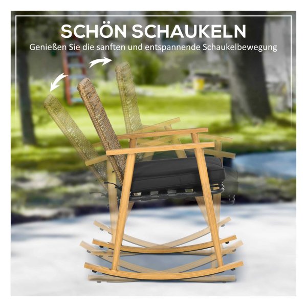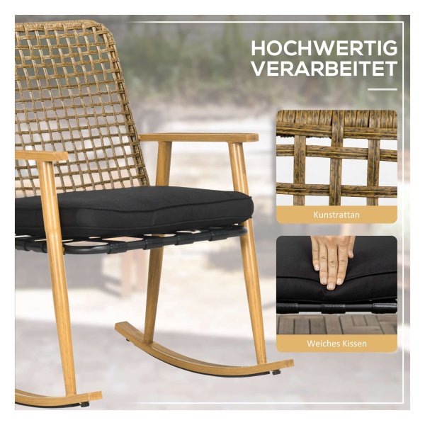 - Schommelstoelen met rugleuning van robuust en duurzaam plastic rotan, bestand tegen alle weersomstandigheden.