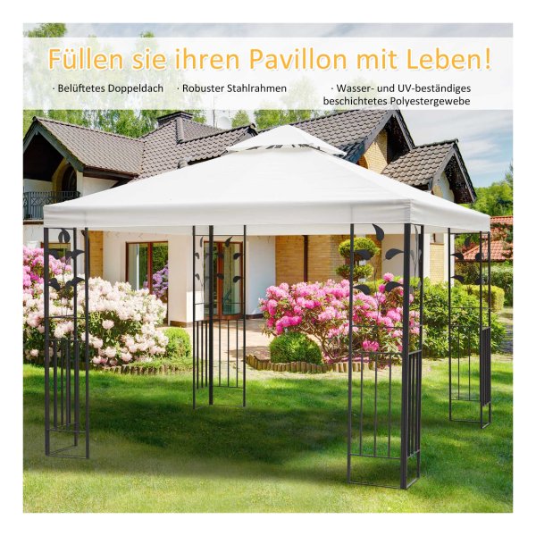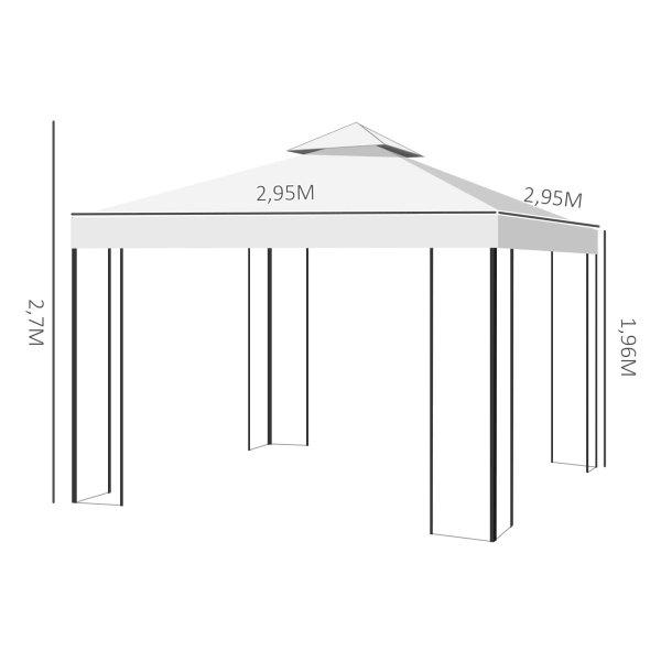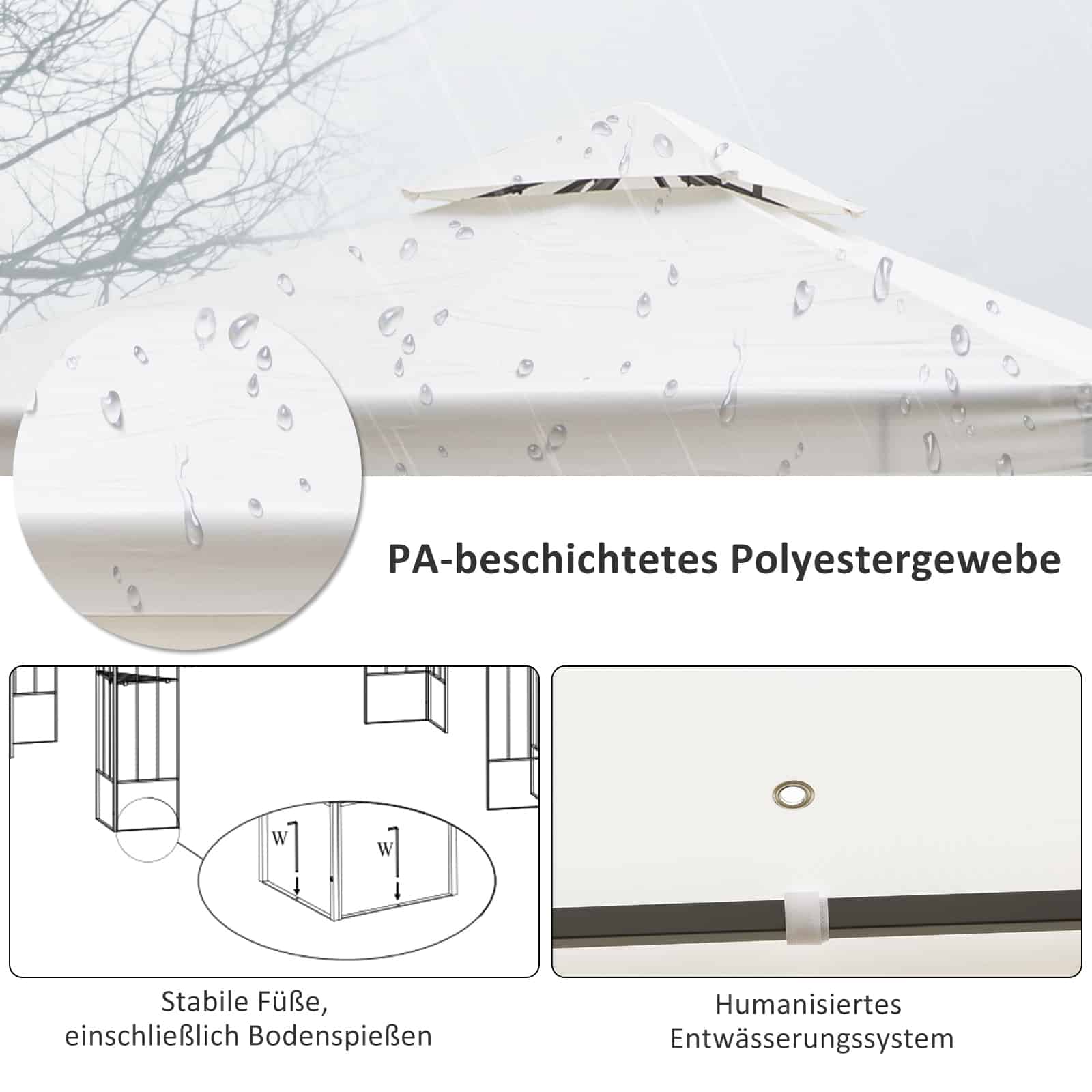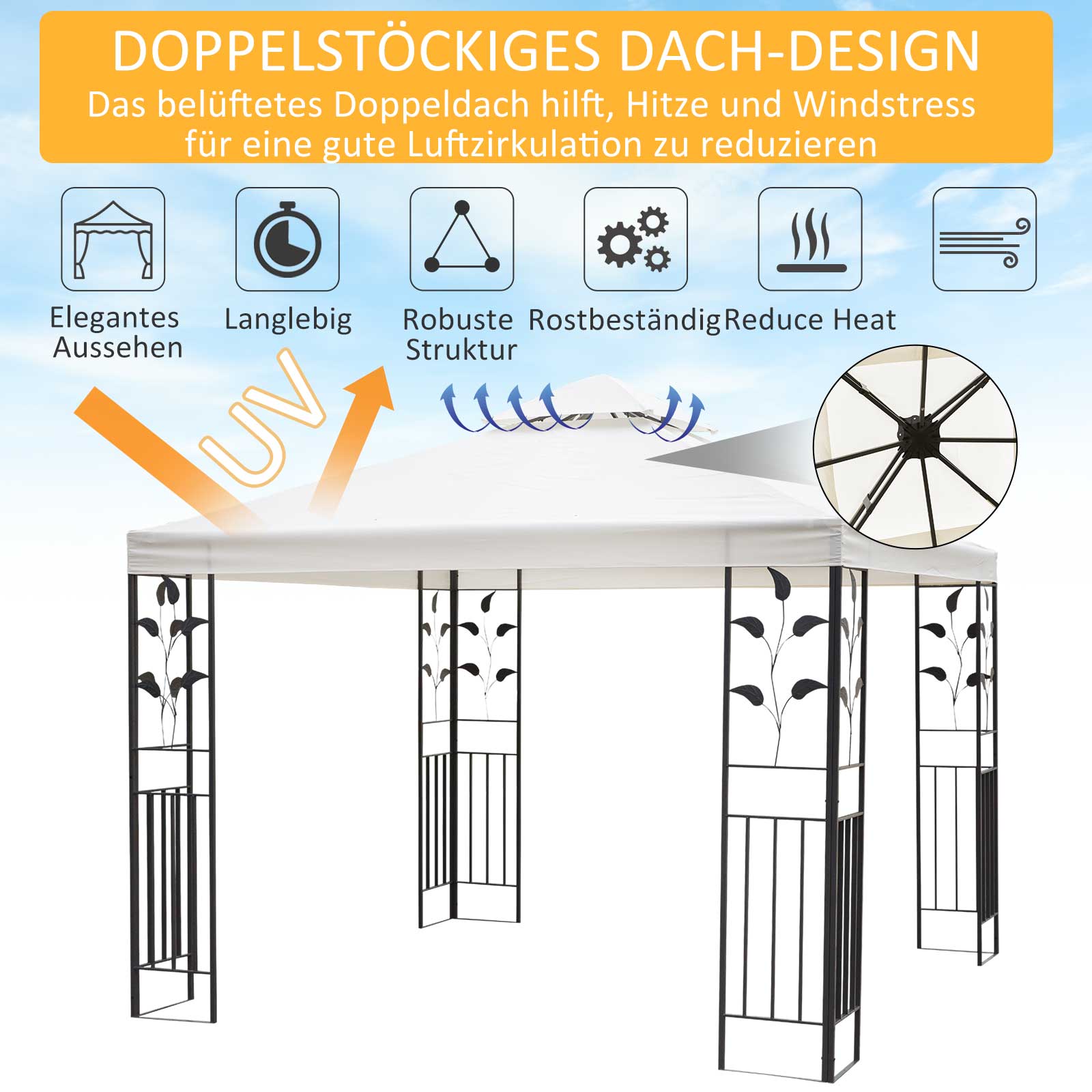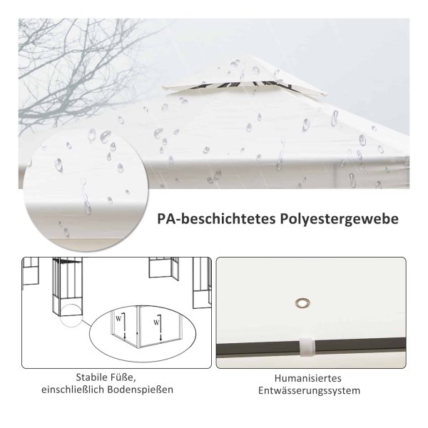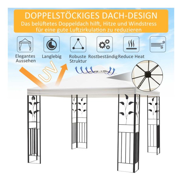 Wil je jouw buitenruimte een chique uitstraling geven? Dan is het tuinpaviljoen van RoyalGarden met een stalen frame en dubbel dak in crème wit de perfecte keuze! Dit elegante paviljoen zorgt voor een stijlvolle zonbescherming voor elke gelegenheid.