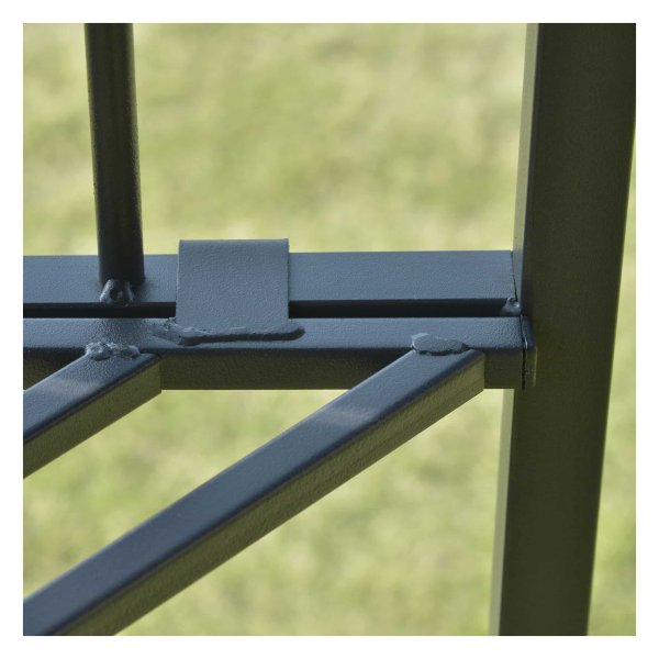 Bullet Point 2 | Breite -platforms: De ladder wordt geleverd met 2 verwijderbare veiligheidsplatforms met een niet -slipoppervlak en bevestigingshaken |
