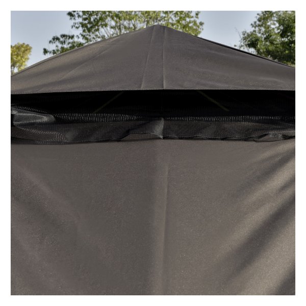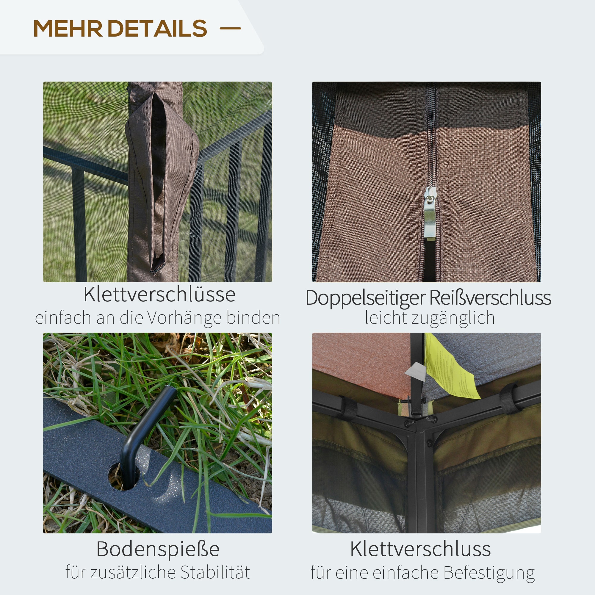 Het metalen frame van het paviljoen zorgt voor een stabiele en duurzame structuur die bestand is tegen verschillende weersomstandigheden. Het dubbele dak met netstofstructuur zorgt voor een goede luchtcirculatie, terwijl de plafondhaken u de mogelijkheid bieden om lampen of fans op te hangen voor extra comfort.