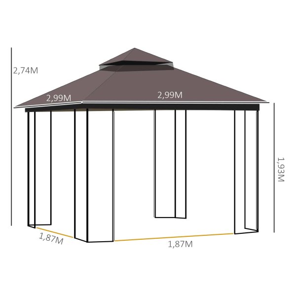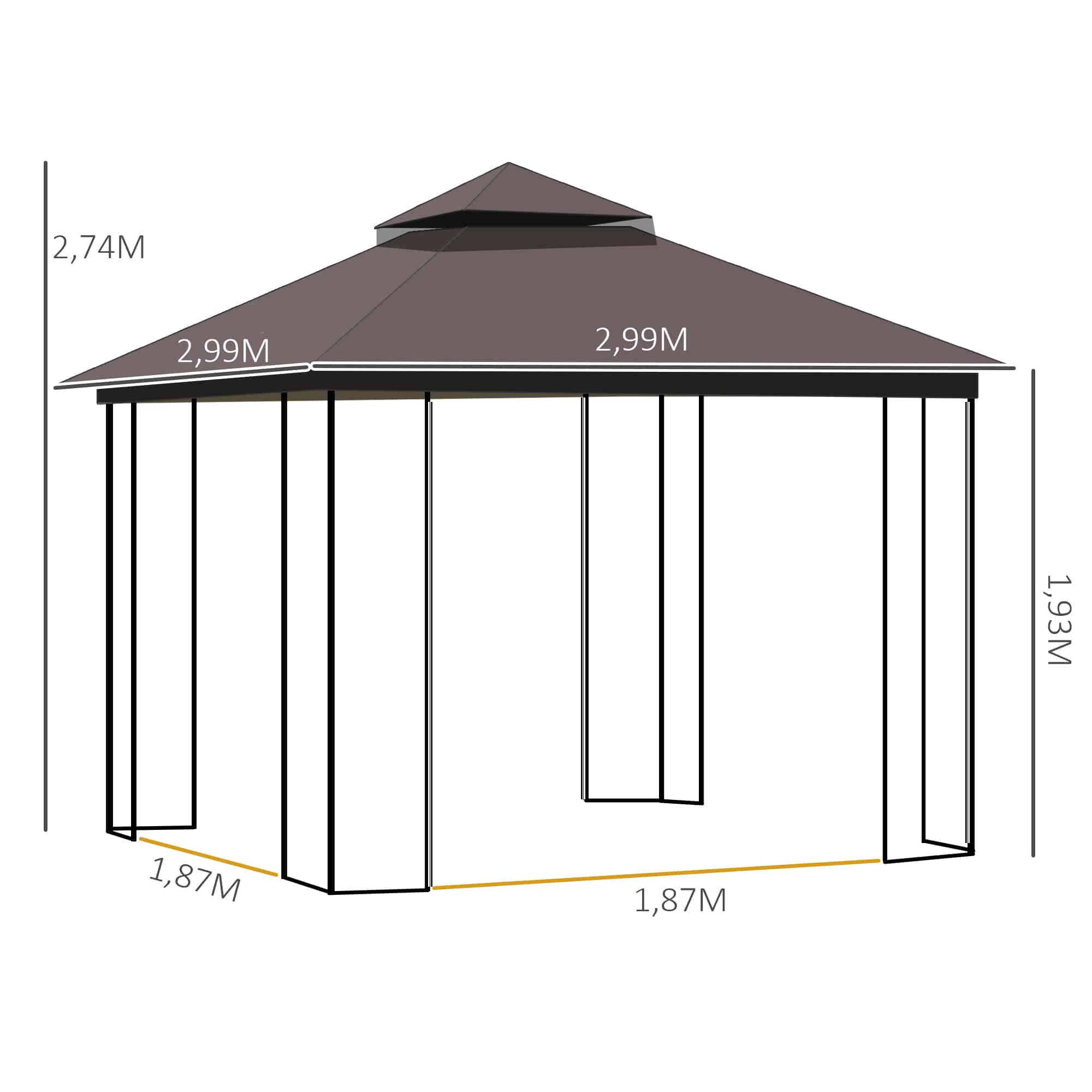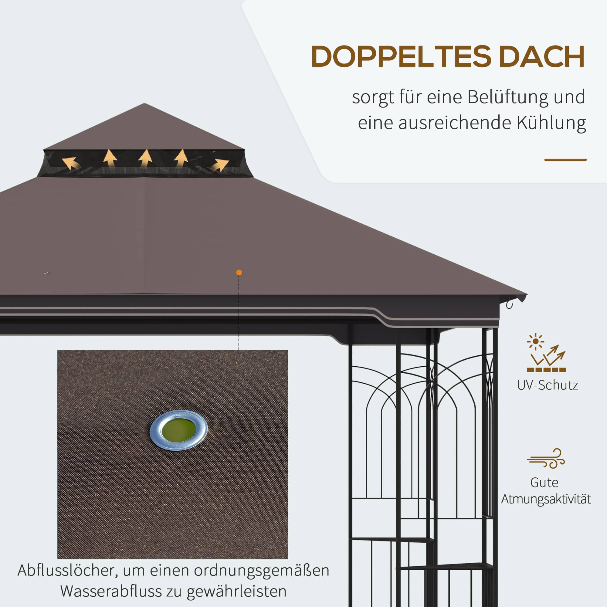 Tuinpaviljoen – Dubbel dak – Metalen frame – Koffiekleur