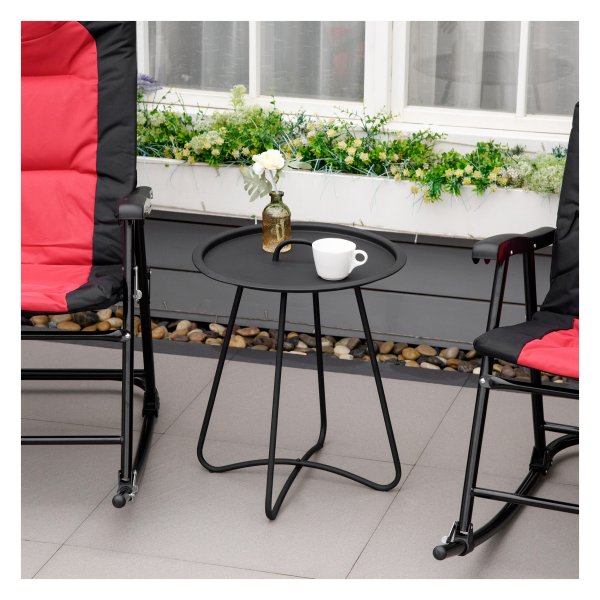 - Poedercoating voor duurzaamheid: het materiaal van de bijzettafel is poedergecoat, wat zorgt voor een lange levensduur, zelfs bij buitengebruik. Zo kun je genieten van deze tafel in alle weersomstandigheden, zonder zorgen te maken over beschadigingen.
