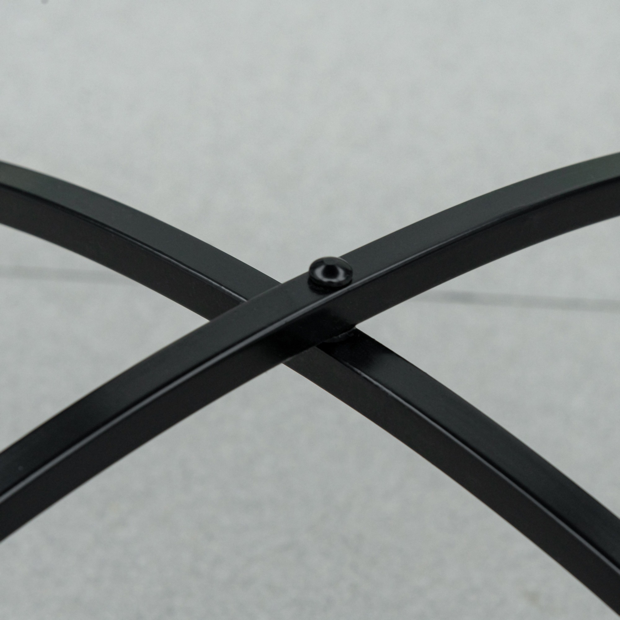 Het tafelblad is gemaakt van hoogwaardig keramiek en rust op een stevig metalen frame, waardoor het zowel robuust als lichtgewicht is voor eenvoudige verplaatsing.