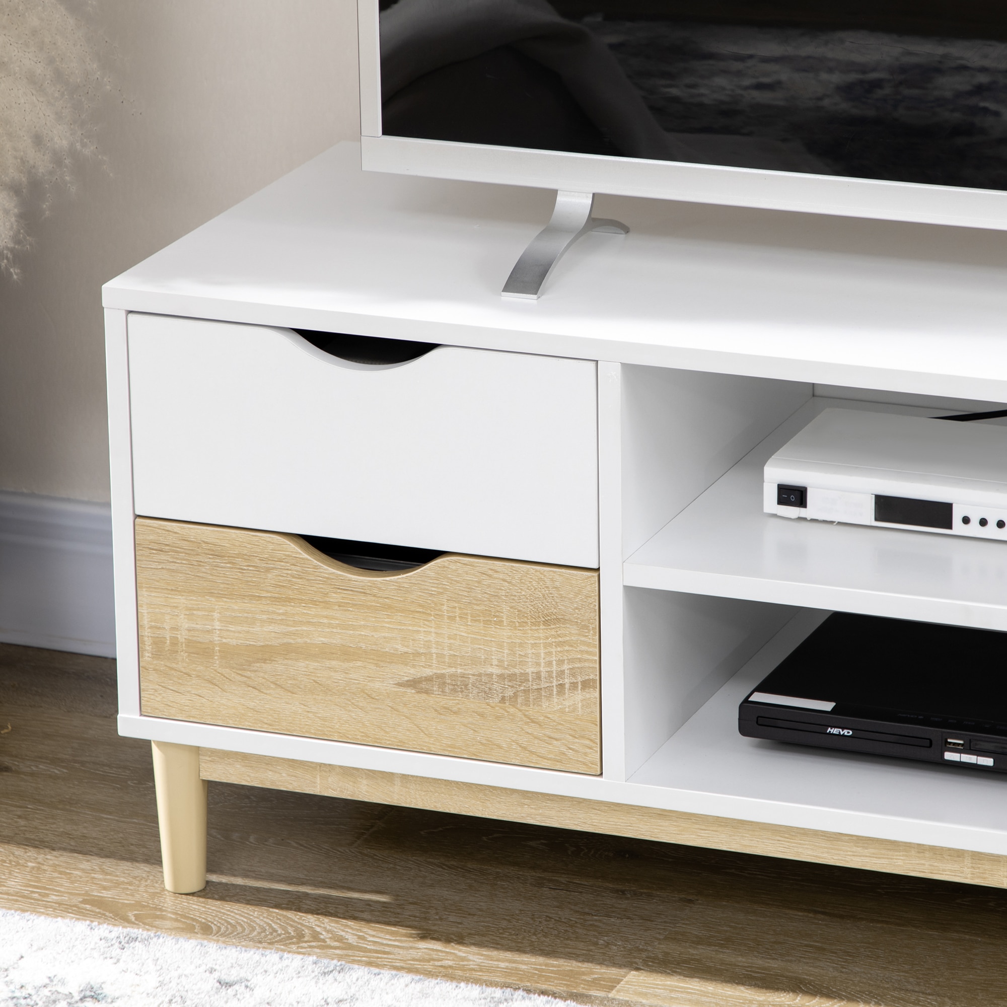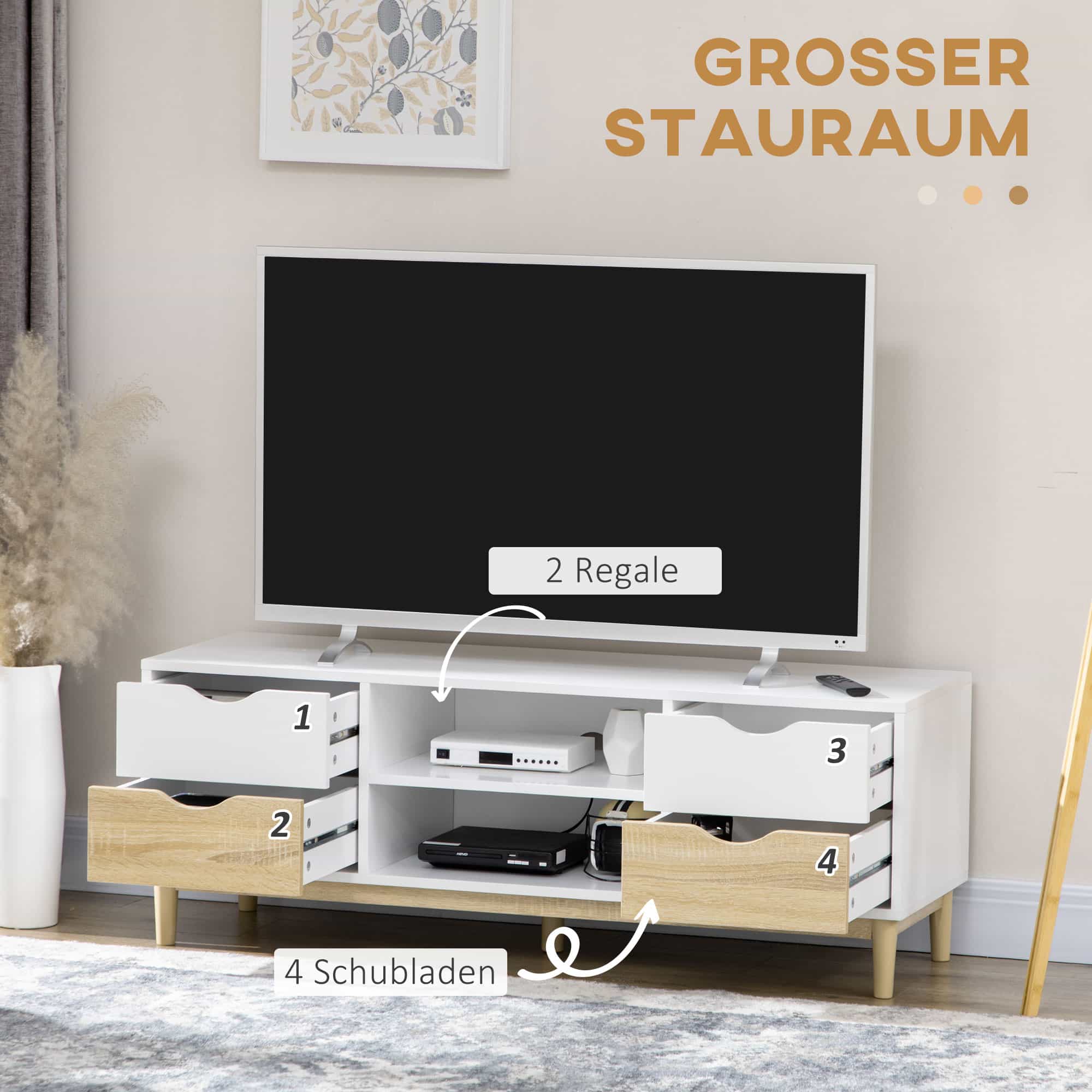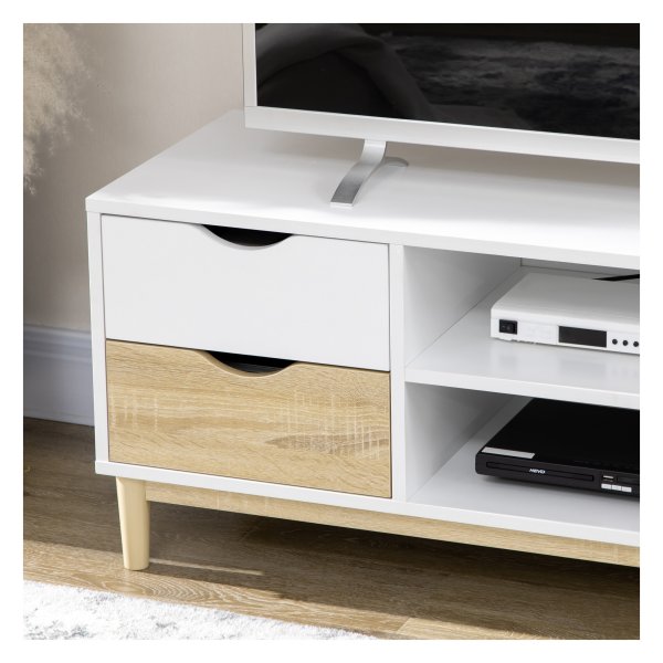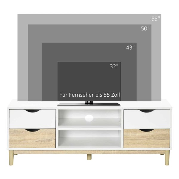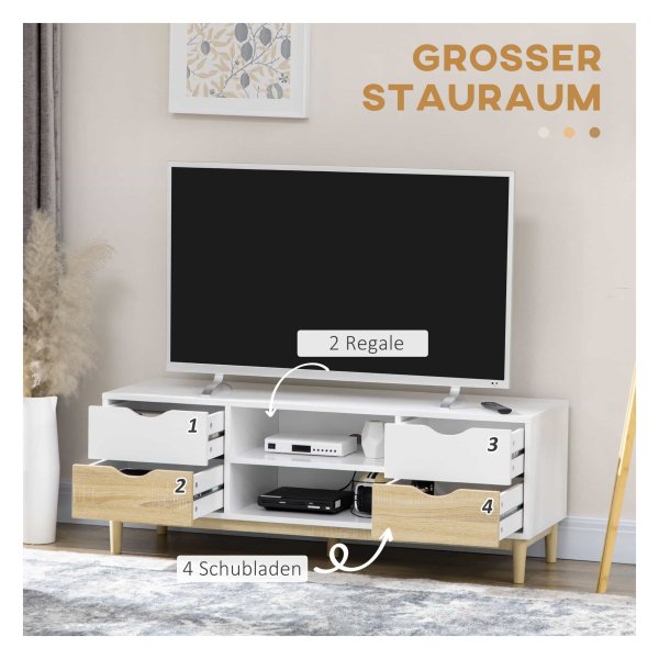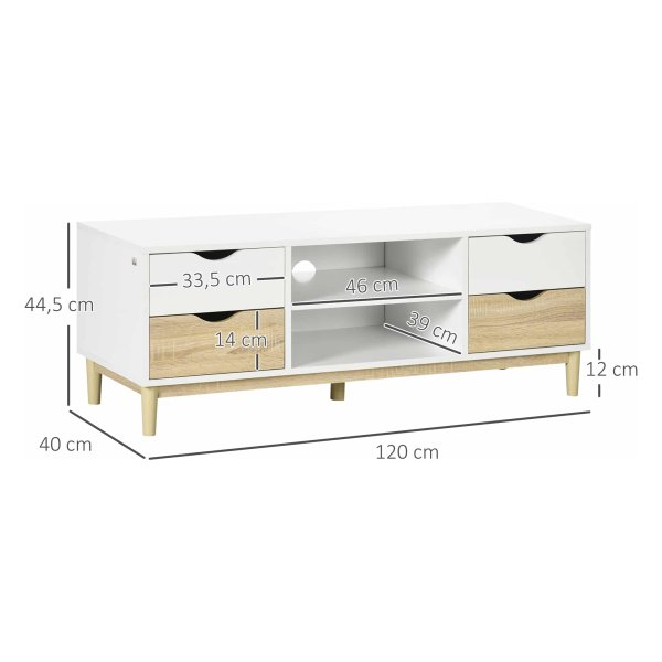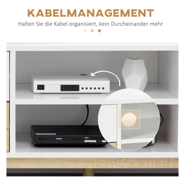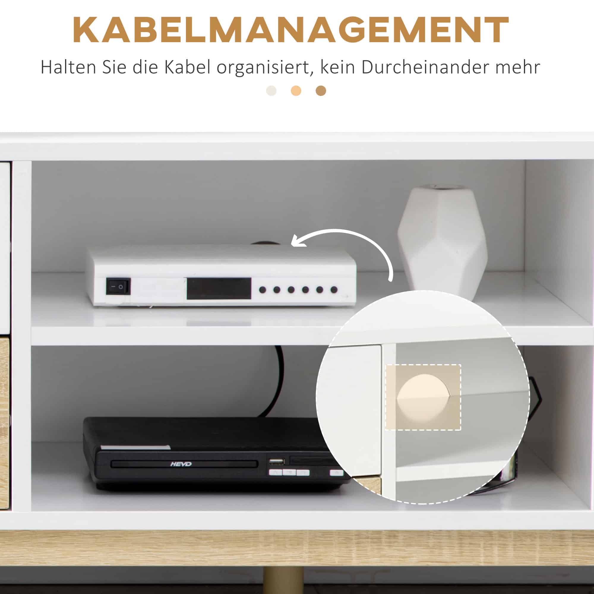 Met 4 ruime laden en 2 vakken biedt dit tv-meubel voldoende ruimte om niet alleen je televisie, maar ook al je multimedia-apparatuur en accessoires op te bergen. Zo kun je je videogamecollectie of favoriete boeken netjes opbergen, waardoor je woonkamer altijd opgeruimd blijft. Daarnaast is er een slim kabelbeheersysteem ingebouwd, waardoor je kabels netjes en georganiseerd blijven zonder wirwar van draden.