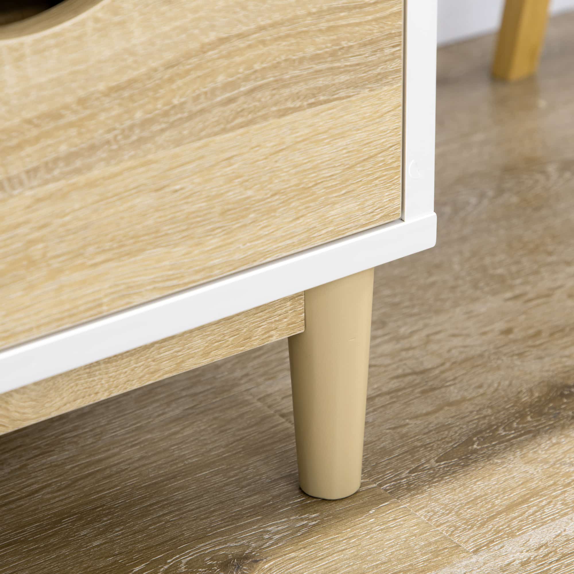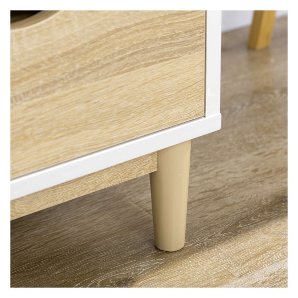De benen van dit tv-meubel zijn gemaakt van massief hout, waardoor het meubelstuk niet alleen stijlvol is, maar ook zeer stabiel en duurzaam. Je kunt erop vertrouwen dat dit tv-meubel jarenlang meegaat en zijn vorm behoudt, zelfs bij dagelijks gebruik.
