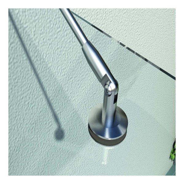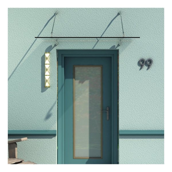 Deze moderne overkapping combineert een strak ontwerp met functionaliteit en veiligheid. De roestvrijstalen beugels zorgen voor stabiliteit en maken deze overkapping een echte blikvanger aan elke huiswand.