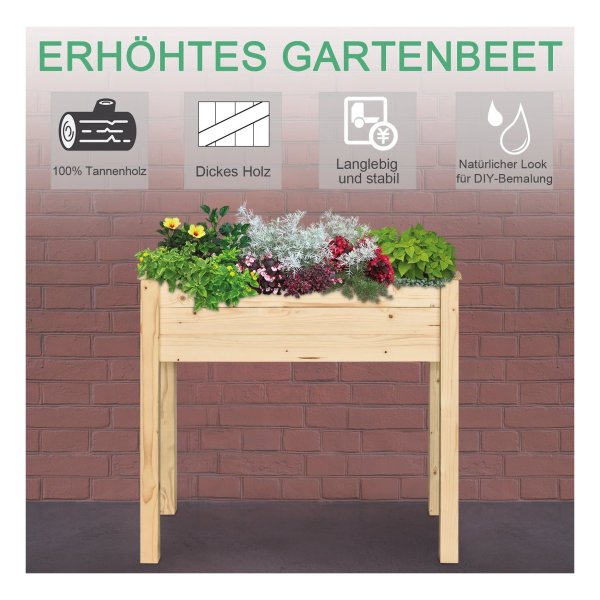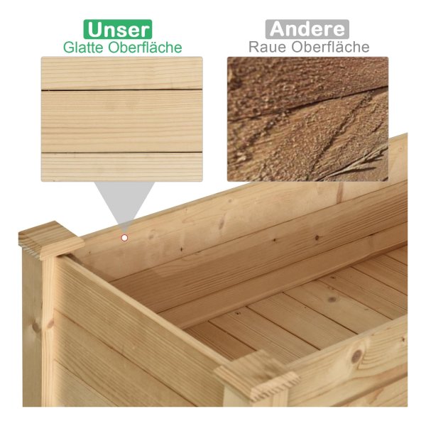 Dankzij het onbehandelde design kunt u deze plantenbak naar wens aanpassen of zelfs verven om bij uw persoonlijke stijl te passen. Met een totale afmeting van 86L x 46B x 76H cm en een plantgebied van 80L x 40B x 18,5H cm is er voldoende ruimte voor al uw favoriete planten en bloemen.
