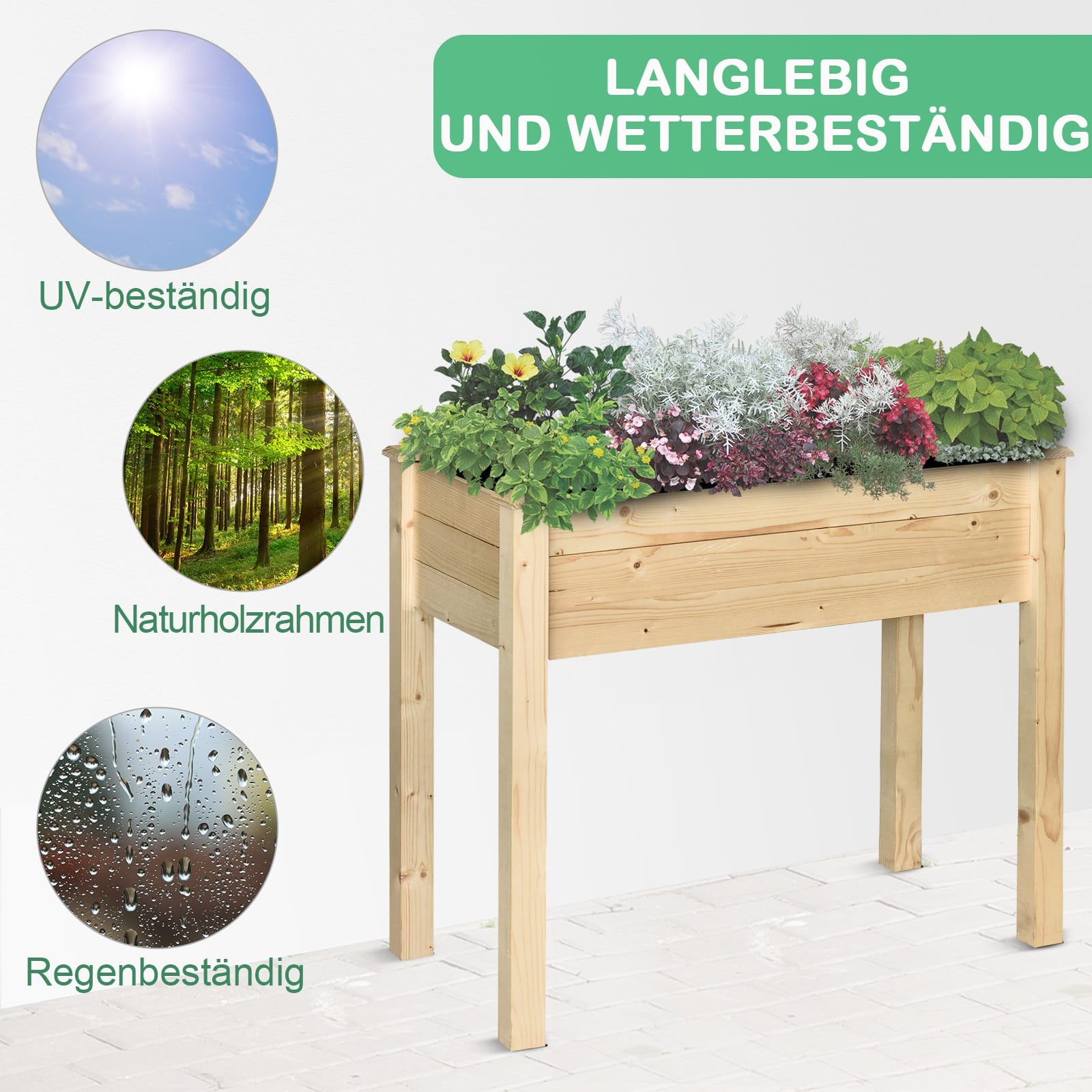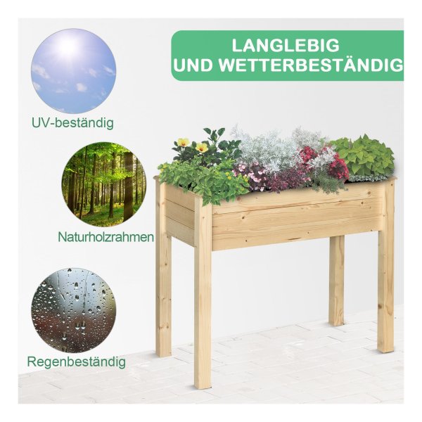 Met een hoogte van de voeten van 52 cm kan deze plantenbak gemakkelijk op een verhoogd oppervlak geplaatst worden voor een betere zichtbaarheid en toegankelijkheid. Daarnaast heeft de bak een draagvermogen van maar liefst 80 kg, dus u kunt met een gerust hart al uw favoriete planten erin plaatsen.