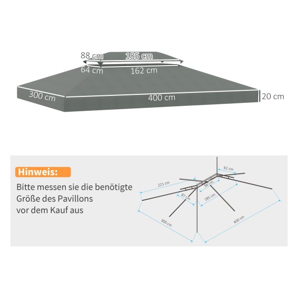 Met dit vervangende dak voor je tuinpaviljoen geef je je buitenruimte een upgrade en geniet je weer van een frisse look en optimale bescherming. Bestel nu en profiteer van een nieuw dak boven je hoofd voor jarenlang plezier in je tuin!