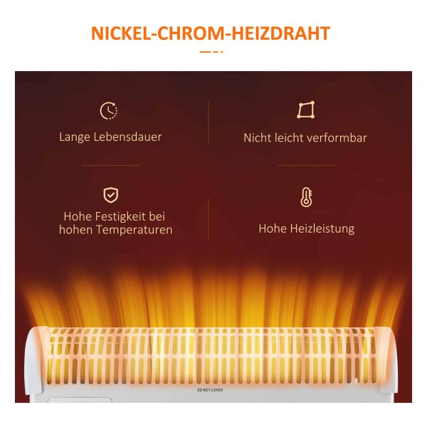 De is uitgerust met een nikkel-chroom verwarmingsdraad die niet alleen een hoge sterkte heeft, maar ook een lange levensduur en een efficiënte verwarming biedt. Het apparaat is voorzien van een verstelbare temperatuurinstelling (5-50 ℃) waarmee u de warmte in uw kamer precies naar wens kunt regelen. Daarom kunt u altijd genieten van een aangename en comfortabele omgeving, ongeacht het weer buiten.
