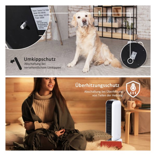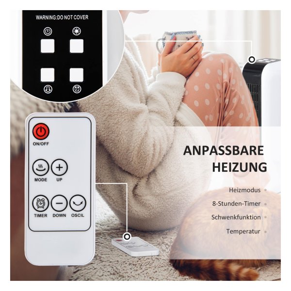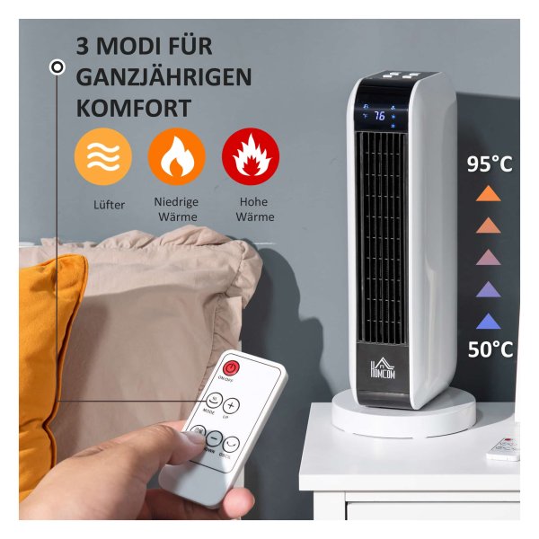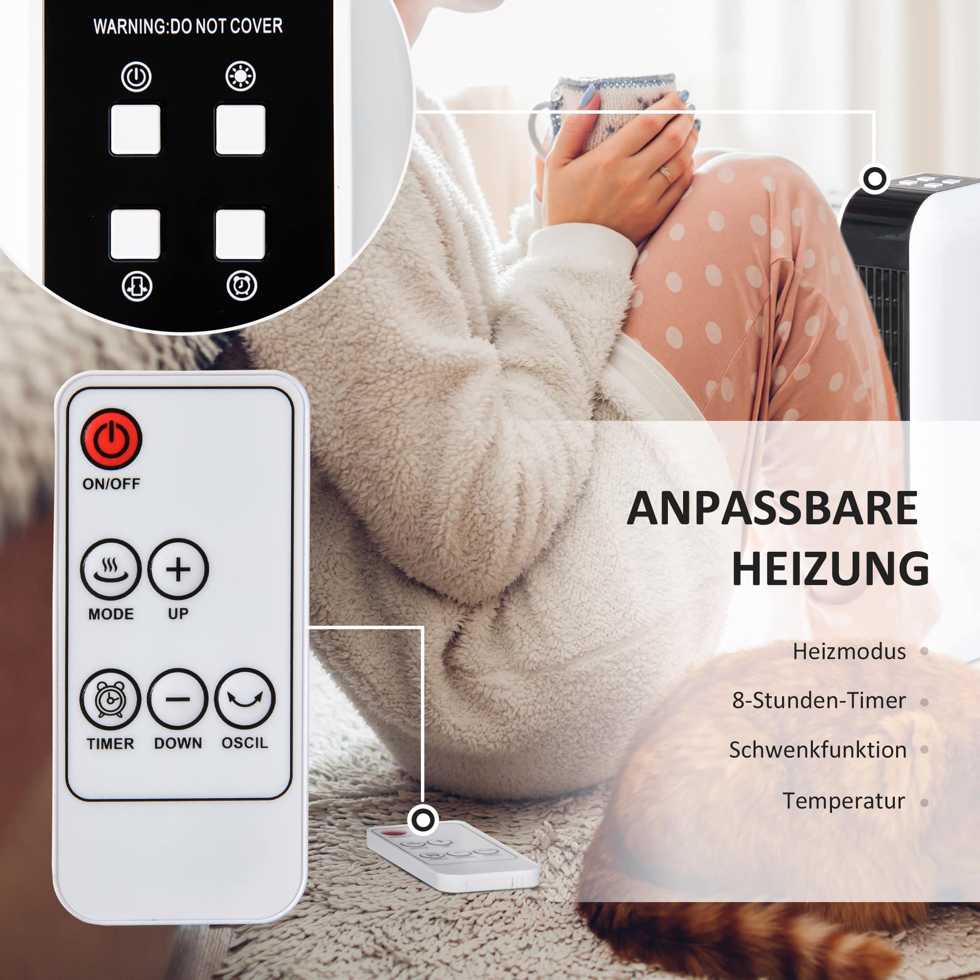 Bullet Point 1 | Efficiënte verwarming: draagbare verwarmingsapparaten voor het interieur met progressief 2000 w keramisch verwarmingselement creëren een effectieve en onmiddellijke warmte voor een oppervlakte van 20 tot 25 m² Individuele instelling: u kunt Vrije verwarmingsmodus (ventilator/laag vuur/hoog vuur) en de temperatuur (10-35 ° C) met de afstandsbediening of het bovenste bedieningspaneel |
