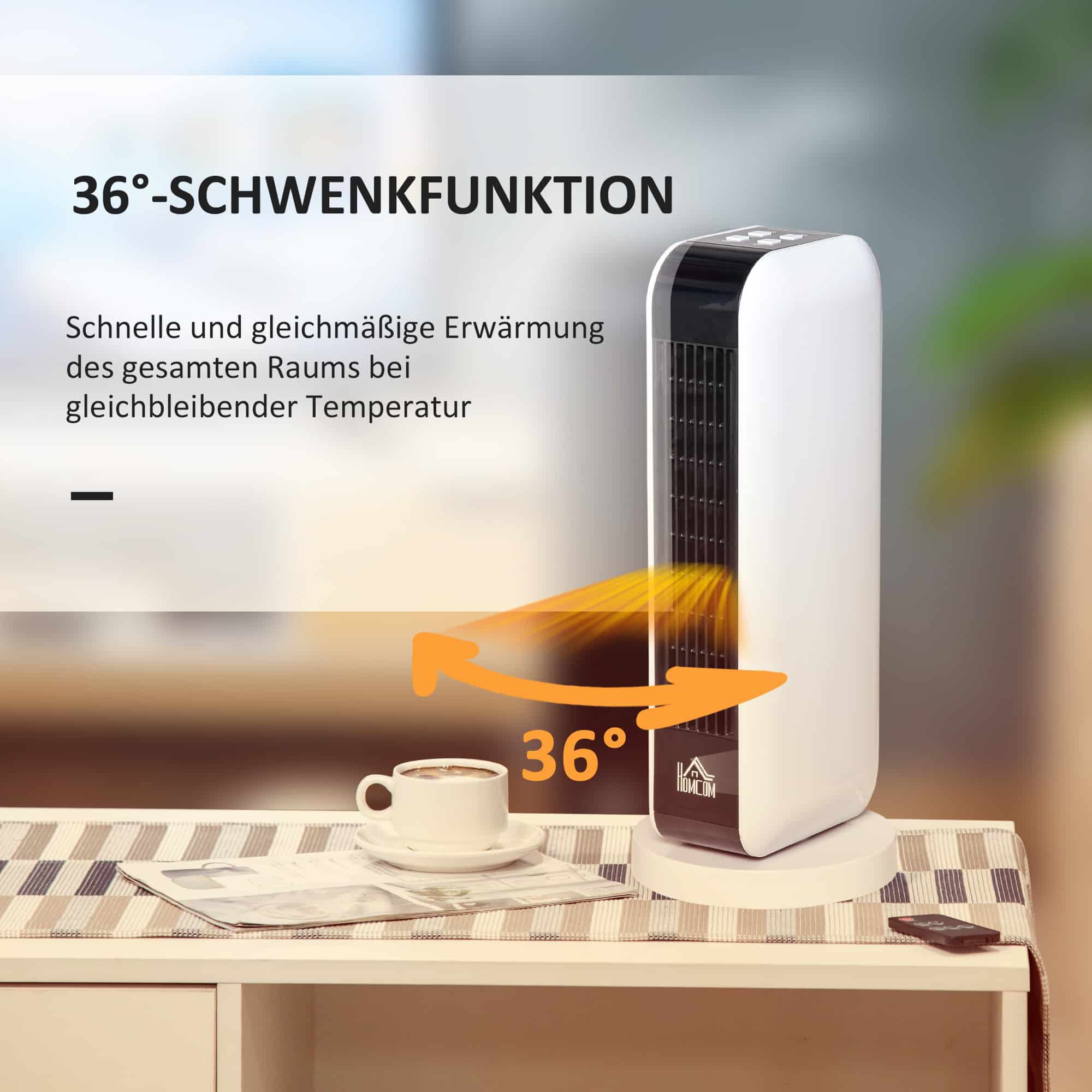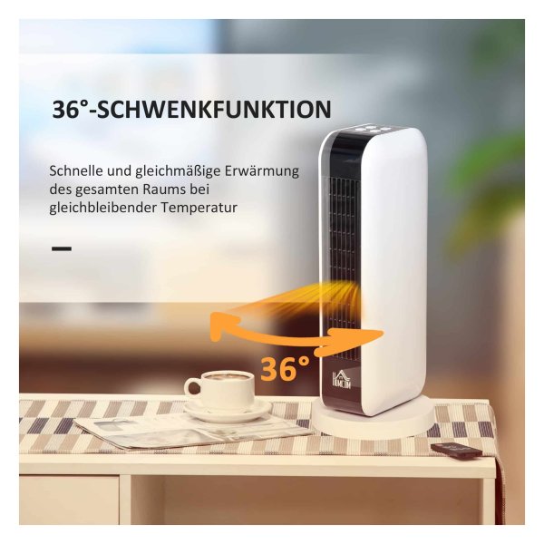 Bullet Point 3 | Oscillatie met timer: de 36 ° oscillatie zorgt voor een gelijkmatige verdeling van de warme lucht in kleine kamers en is met een timer -functionele functie met één knop past zich aan uw werk- of slaaptijden aan en bespaart energie |
