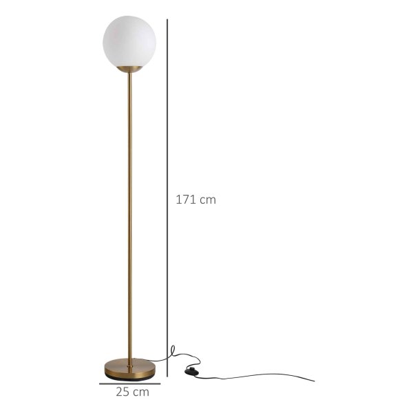 Op zoek naar een functionele en stijlvolle toevoeging aan je interieur? Dan is onze vloerlamp met slank metalen ontwerp en bolvormige glazen lampenkap precies wat je nodig hebt. Deze lamp is zowel handig als elegant en zal elke ruimte laten stralen.