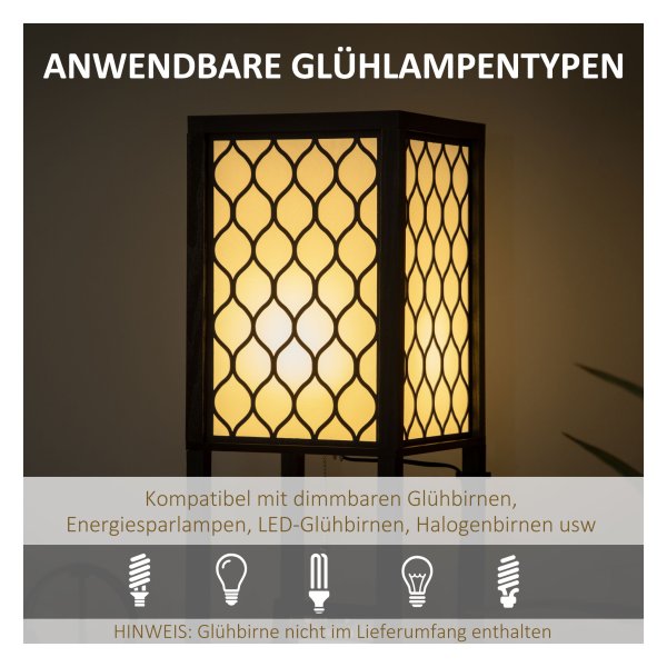 De vloerlamp is uitgerust met een E27 fitting, wat betekent dat je verschillende soorten verlichting kunt gebruiken, zoals LED-lampen, halogeenlampen en gloeilampen (Let op: lamp niet inbegrepen bij levering).