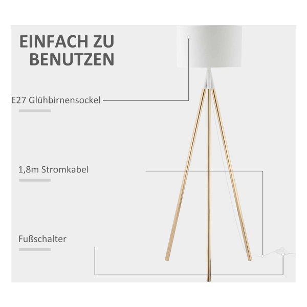 De vloerlamp is geschikt voor E27 fittingen (gloeilampen niet inbegrepen) en heeft een maximale output van 40W. Met zijn moderne design en praktische functies is deze vloerlamp een waardevolle toevoeging aan elk interieur. Bestel nu en geef je ruimte een stijlvolle upgrade met deze goudkleurige vloerlamp!