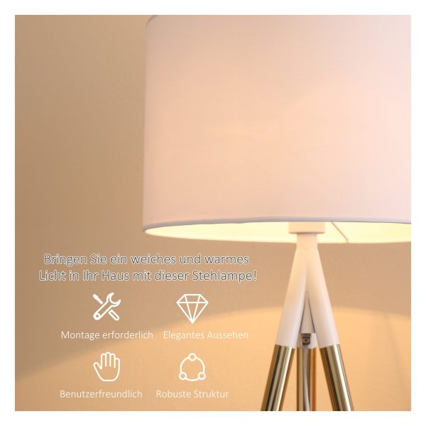 De vloerlamp is voorzien van een elegante cilindrische lampenkap die zorgt voor een gelijkmatige verspreiding van het licht. Dit zorgt voor een aangename verlichting in de kamer, ideaal voor gebruik in de woonkamer, slaapkamer of studeerkamer.