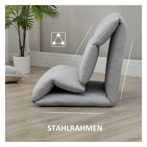 Vloerstoel – Relaxio – 5 standen rugleuning – Inklapbaar – Grijs
