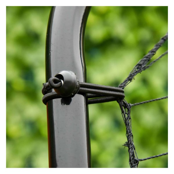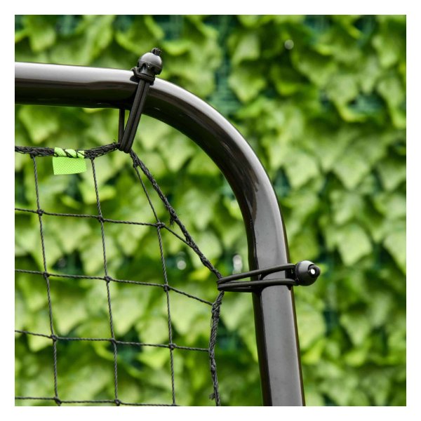Het frame van de Voetbalrebouncer is gemaakt van duurzaam poedercoat metaal, waardoor hij geschikt is voor gebruik buiten. De elastische ligamenten houden het net stevig bij elkaar, zodat je met vertrouwen kunt trainen. De zwarte kleur zorgt voor een stijlvolle uitstraling die in elke trainingsomgeving past.
