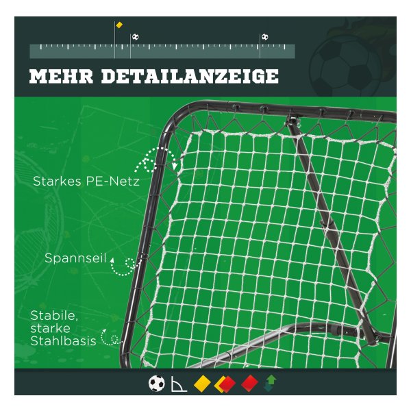 De voetbalrebounder is gemaakt van duurzame materialen, waaronder poedercoated stalen buis en PE-netwerk. Hierdoor is hij sterk genoeg om intensief gebruik te weerstaan, zowel door kinderen als volwassenen. De verstelbare hoek zorgt ervoor dat je de rebounder kunt aanpassen aan je specifieke trainingsdoelen, of je nu wilt werken aan nauwkeurigheid, kracht of balbeheersing.