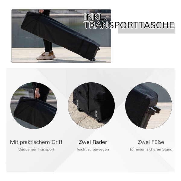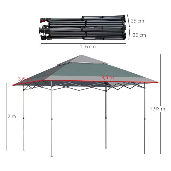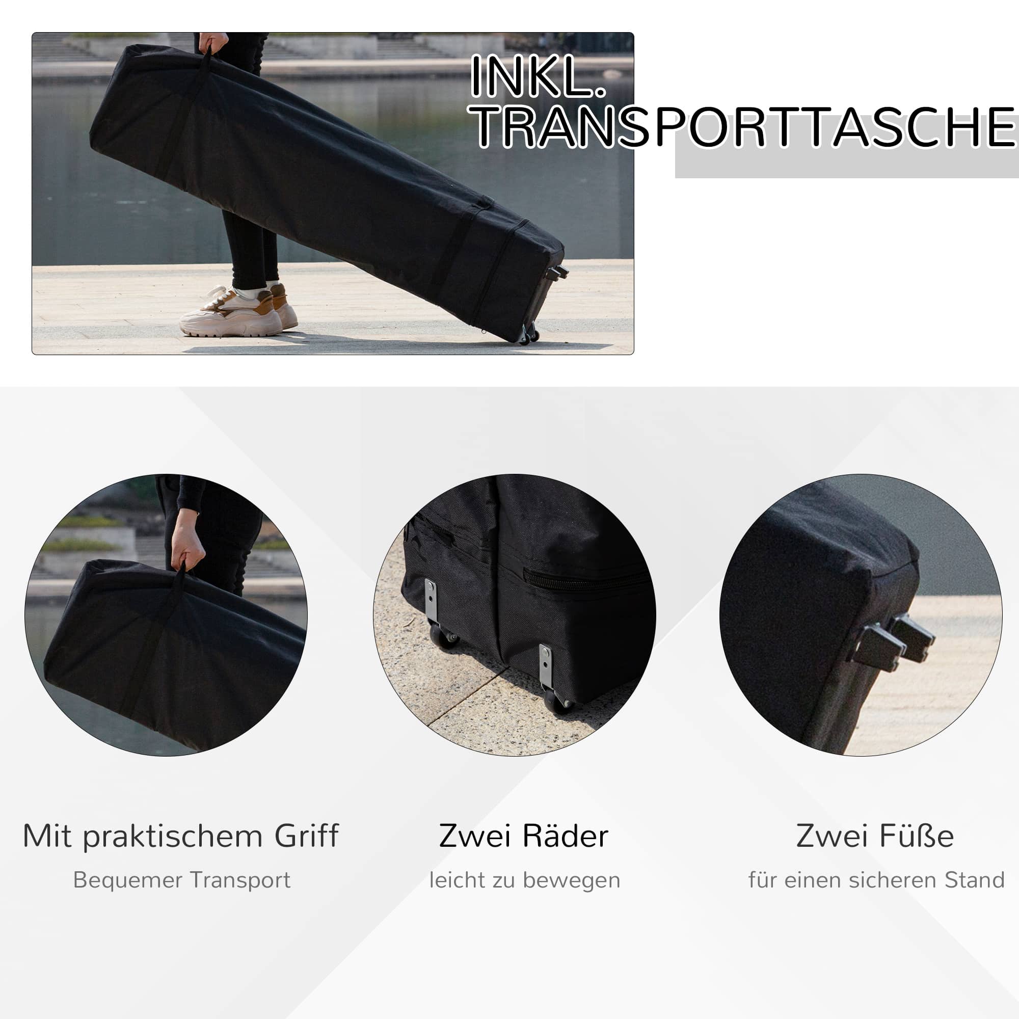 Met een ERP-hoogte van 2 meter biedt dit tuinpaviljoen voldoende ruimte voor al je outdoor activiteiten. De set bevat 1 x pop-up tent, 4 x scanted linnen, 8 x vloerherstellen, 1 x roll-pocket en instructies voor een eenvoudige montage.