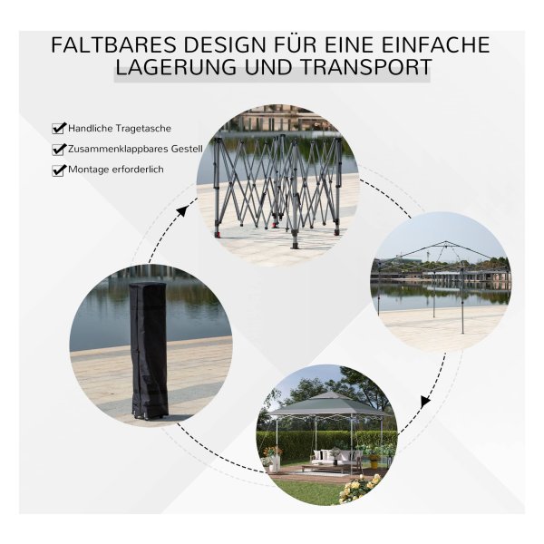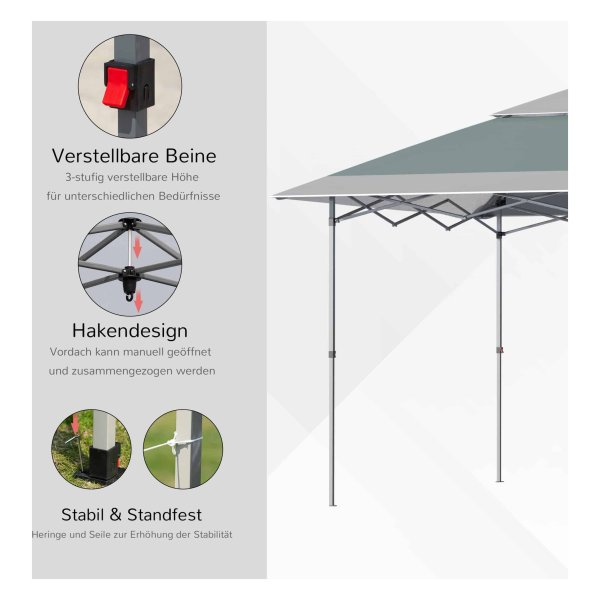 Met het tuinpaviljoen geniet je van de ultieme outdoor ervaring in je eigen tuin. Dit opvouwbare en pop-up paviljoen in het groen is ideaal voor feesten, barbecues, bijeenkomsten, of gewoon om heerlijk te ontspannen in de schaduw.