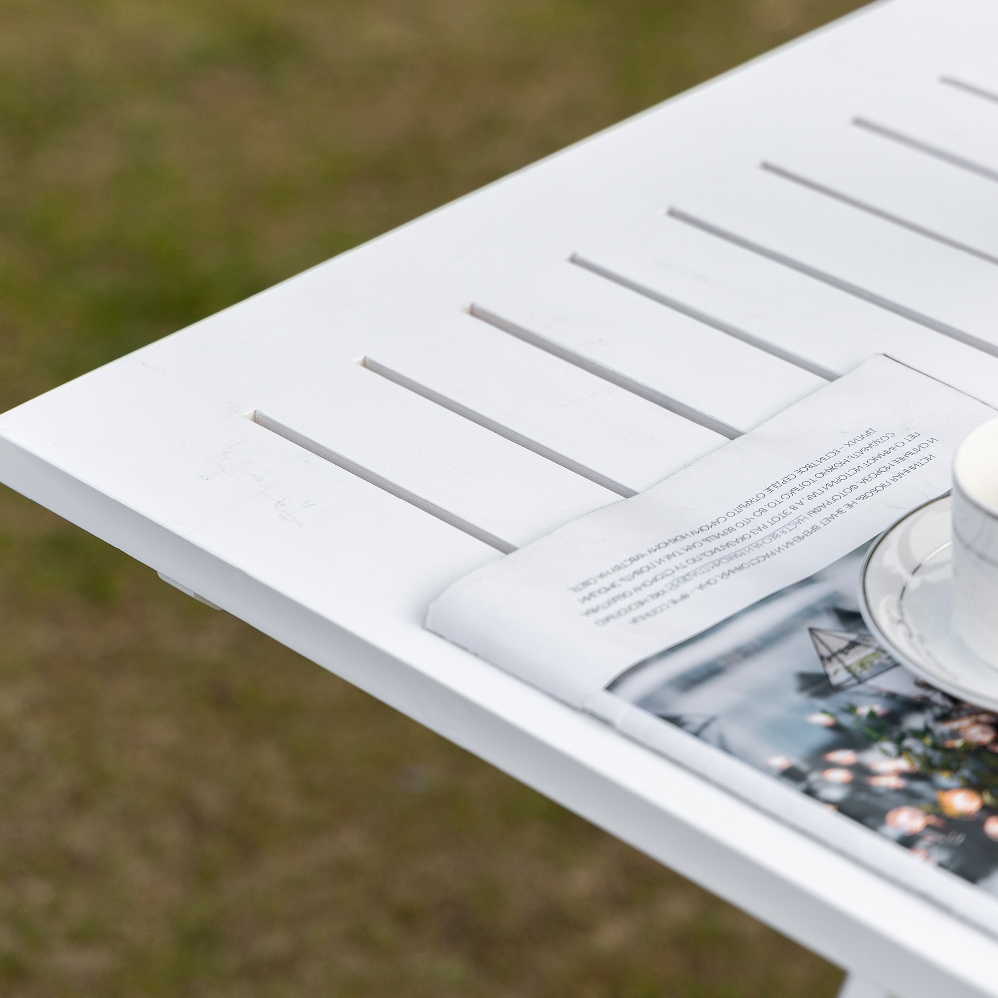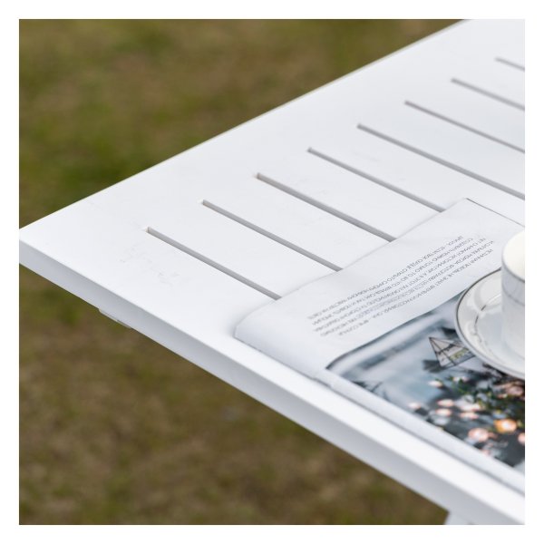Deze opvouwbare bijzettafel is gemakkelijk op te bergen wanneer u deze niet nodig heeft, zo bespaart u waardevolle ruimte in uw tuin of op uw terras. Bovendien is de tafel eenvoudig te reinigen en te onderhouden, waardoor u er langdurig plezier van zult hebben.