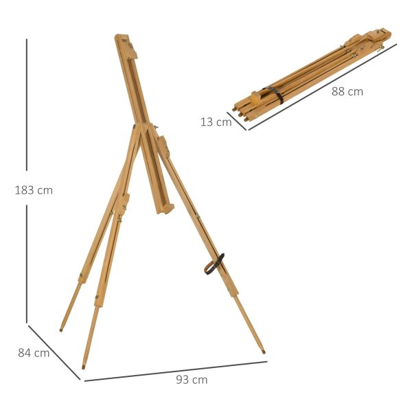Met een natuurlijke houtkleur en de duurzaamheid van beukenhout, past deze schildersezel perfect in elke creatieve ruimte. De totale afmetingen van 93L x 84B x 183H CM bieden voldoende ruimte om comfortabel te werken, terwijl de opgevouwen afmetingen van 88L x 13B x 7T CM zorgen voor handig opbergen en transporteren.