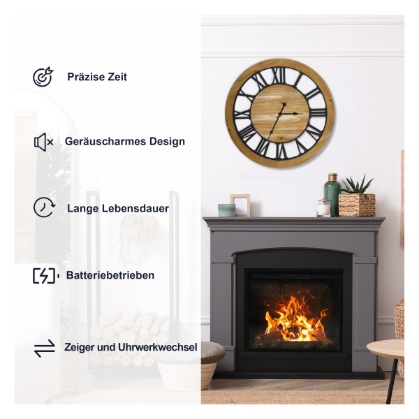 Met een indrukwekkende diameter van 60 cm is deze muurklok extra groot en trekt het meteen de aandacht. De klok is niet alleen functioneel, maar dient ook als decoratie die je huis een unieke uitstraling geeft.