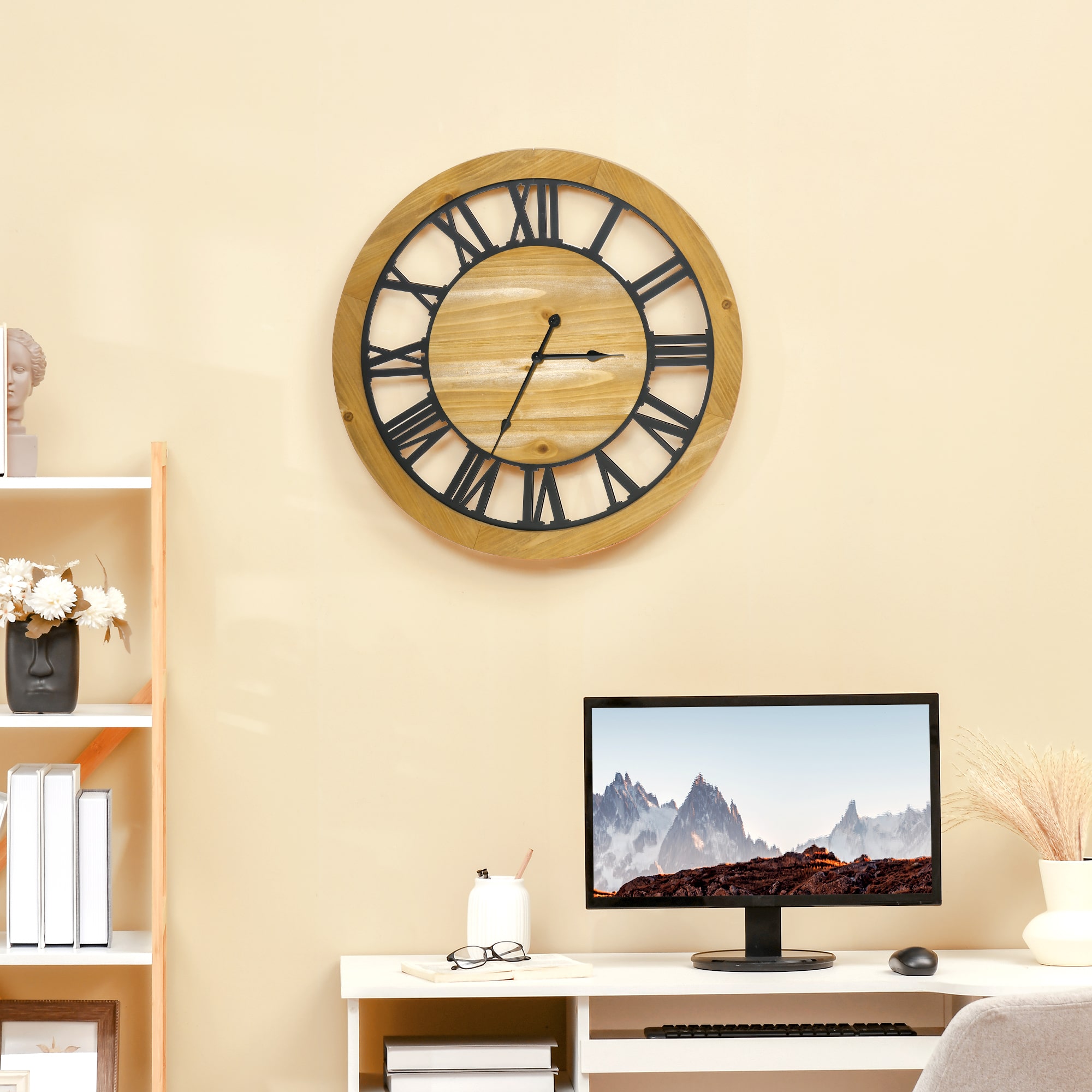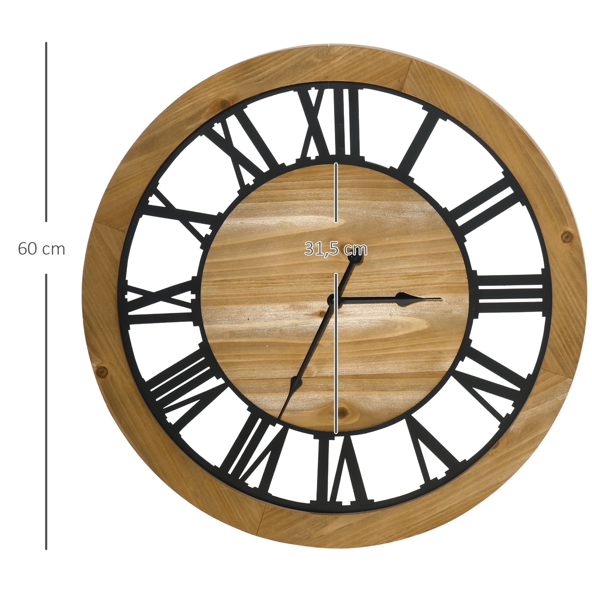 Op zoek naar een stijlvolle toevoeging aan je interieur die ook functioneel is? De Muurklok is een prachtige decoratieve klok die niet alleen de tijd bijhoudt, maar ook een vleugje elegantie toevoegt aan elke ruimte in je huis. Met zijn rustieke stijl, combinatie van metaal en hout, open door ontwerp, grote aanwijzer en klassieke Romeinse cijfers is deze klok een echte blikvanger.