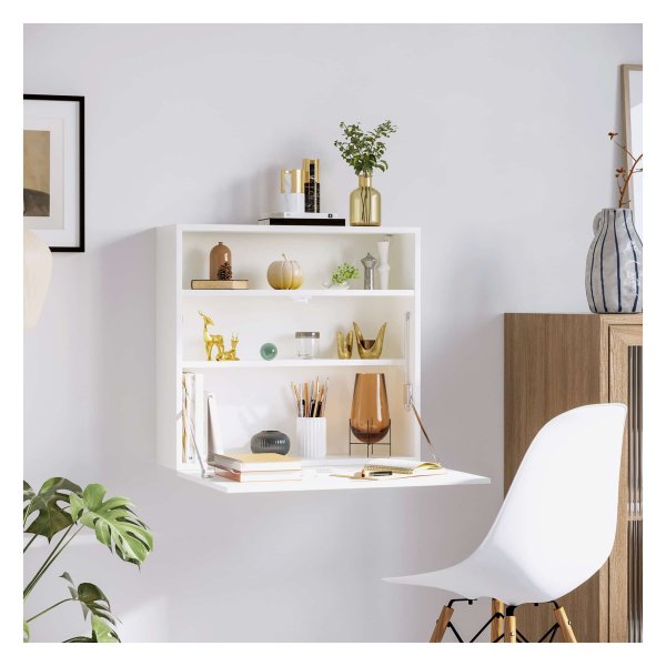 De muurtafel van Zaza Home is een slimme oplossing voor gezinnen met beperkte ruimte. Met planken in verschillende maten biedt deze tafel voldoende ruimte om boeken, papieren en decoraties op te bergen. Dankzij het opklapbare werkblad kunt u de tafel eenvoudig sluiten wanneer deze niet in gebruik is, waardoor u niet alleen ruimte bespaart, maar ook een praktische opslagruimte creëert.