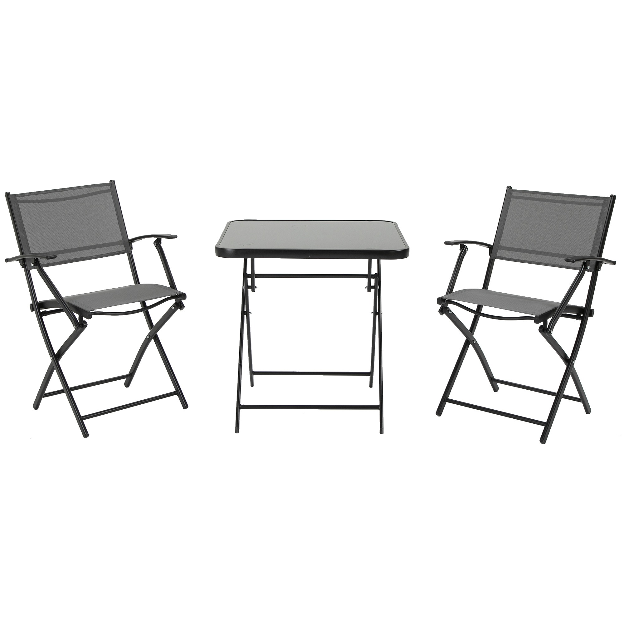 Deze set opvouwbare tuintafelstoelen in zwart en grijs is de perfecte aanvulling op je buitenruimte. Of je nu een klein balkon hebt, een gezellige tuin of een ruim terras, deze tuintafelstoelen zorgen voor comfort en gemak bij elke gelegenheid. De set bestaat uit een tafel en twee bijpassende stoelen, die allemaal gemakkelijk kunnen worden opgevouwen voor eenvoudig transport en compacte opslag.