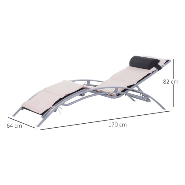 Met afmetingen van L170 x B64 x H82 cm biedt deze ligstoel voldoende ruimte om comfortabel te ontspannen. De rugleuning heeft een lengte van 82 cm en is verstelbaar in 5 verschillende posities, variërend van 57,5 cm tot 92 cm hoogte. De stoel zelf is 51 cm breed en 35 cm diep, en de voetsteun heeft een lengte van 54 cm.