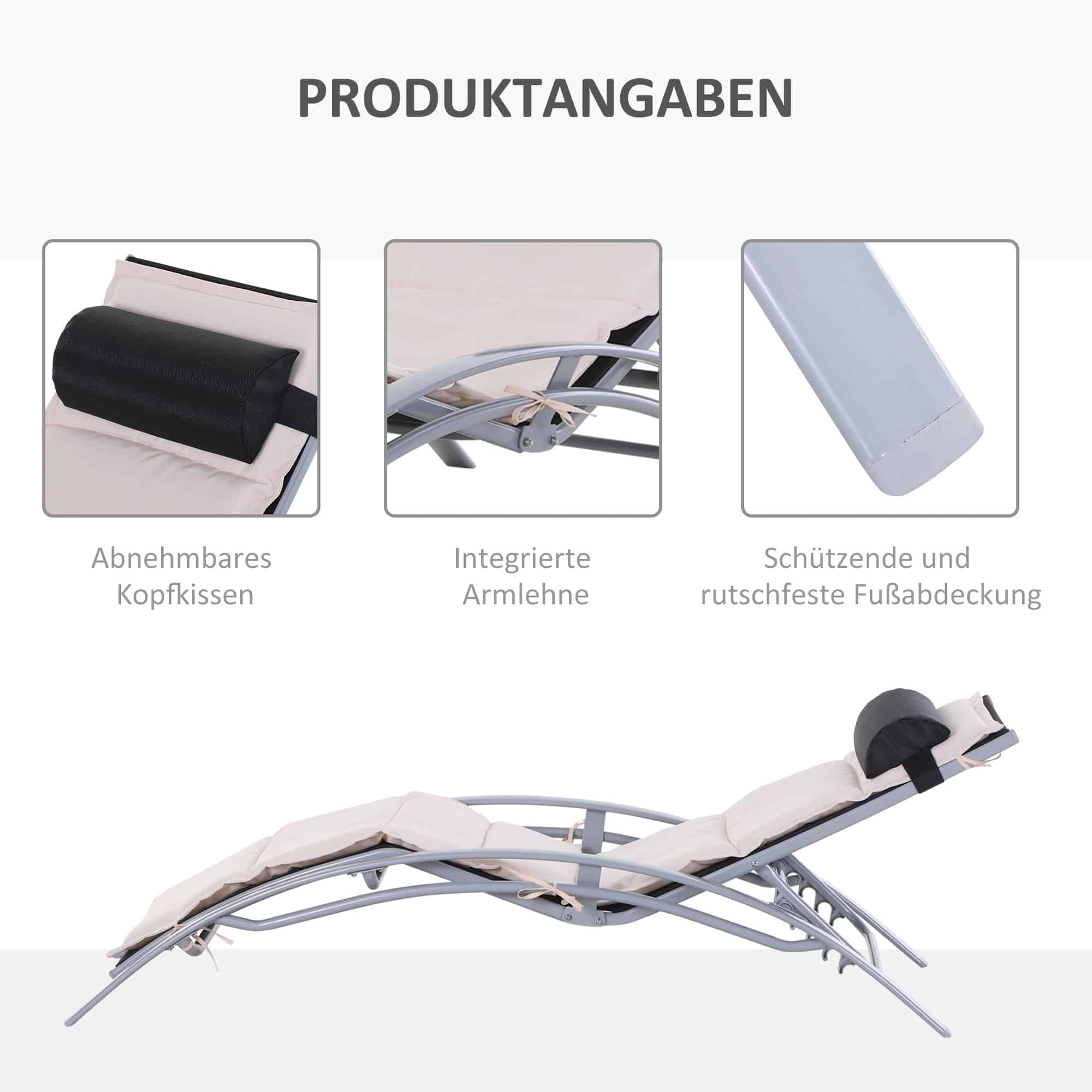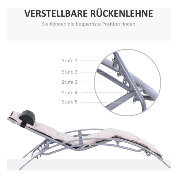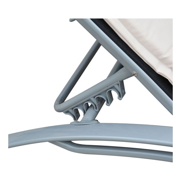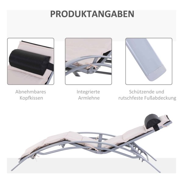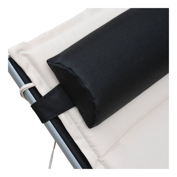 De ligstoel wordt geleverd met een liggende mat en nekkussen voor extra comfort en ondersteuning. De armleuningen zijn 36 cm lang en de maximale belastbaarheid van de ligstoel is 120 kg.