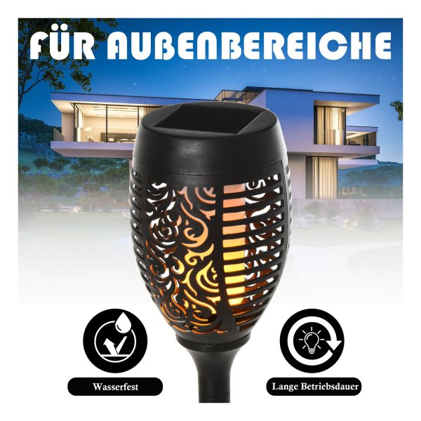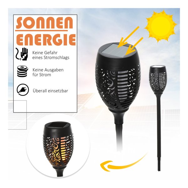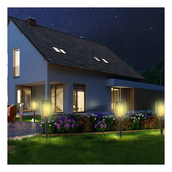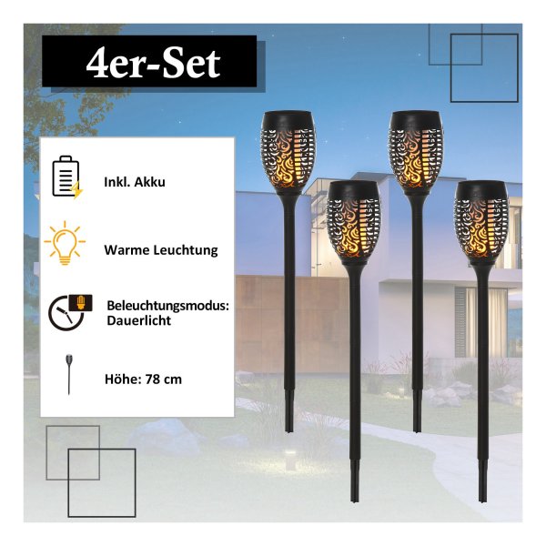 Met de SolarGlow zonnetuinlampen creëer je een betoverende sfeer in je tuin, op je balkon of terras. Deze set van vier zwarte zonnelampen verspreidt een warm en flikkerend licht, waardoor je buitenruimte een romantische uitstraling krijgt.