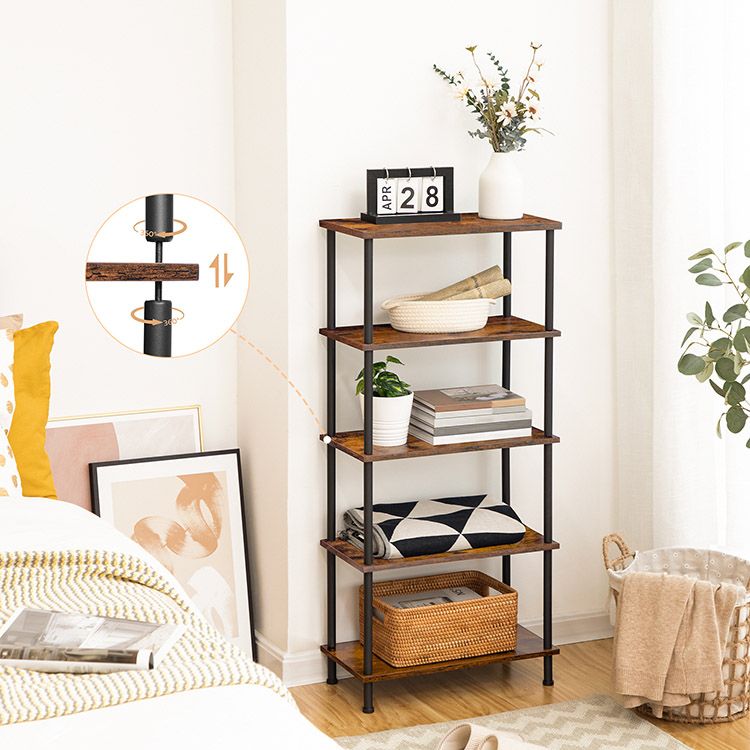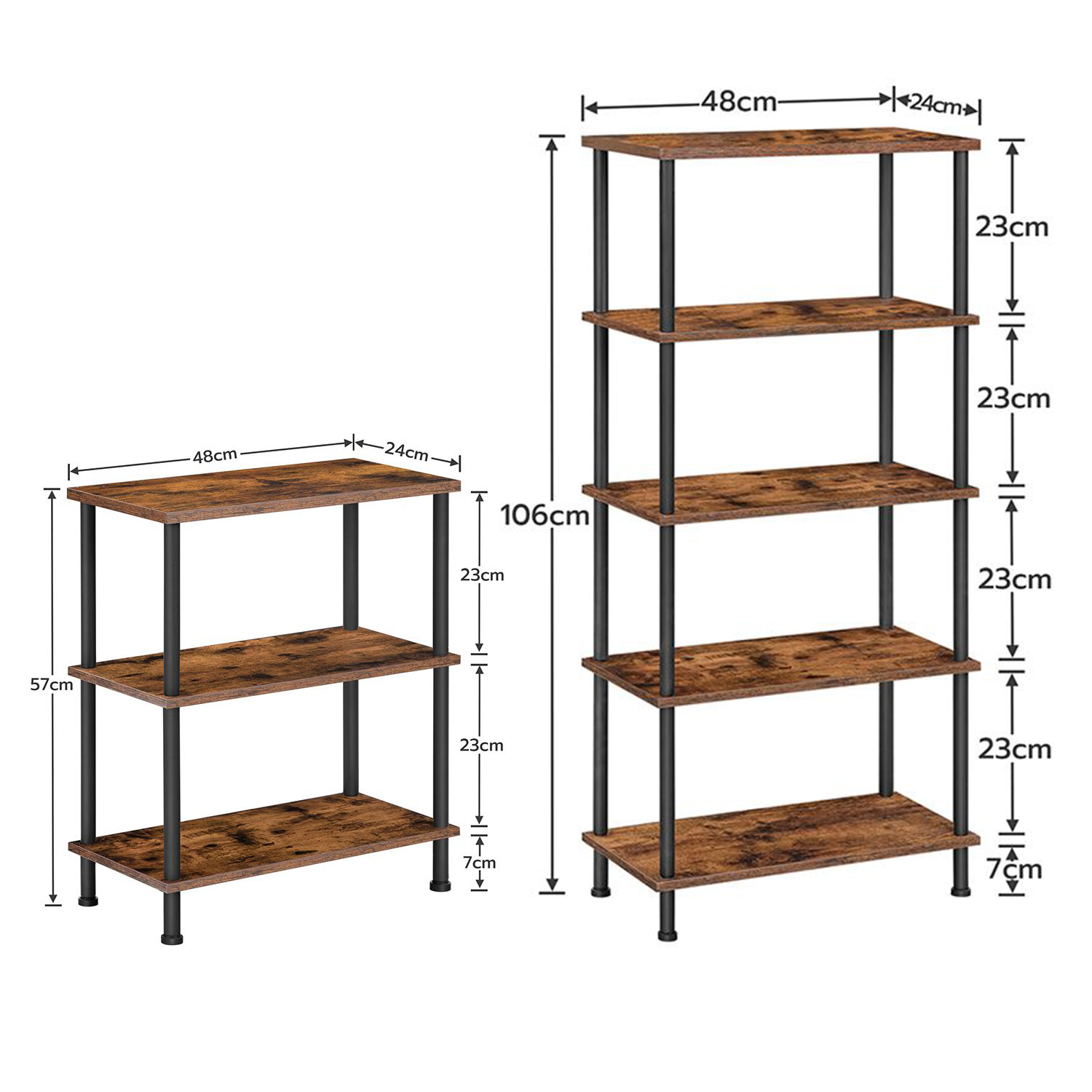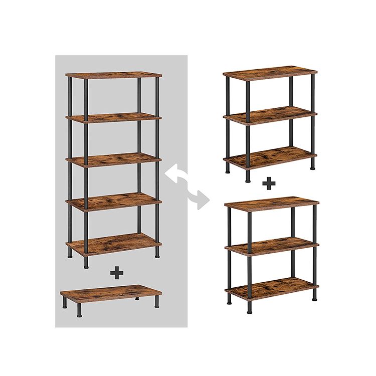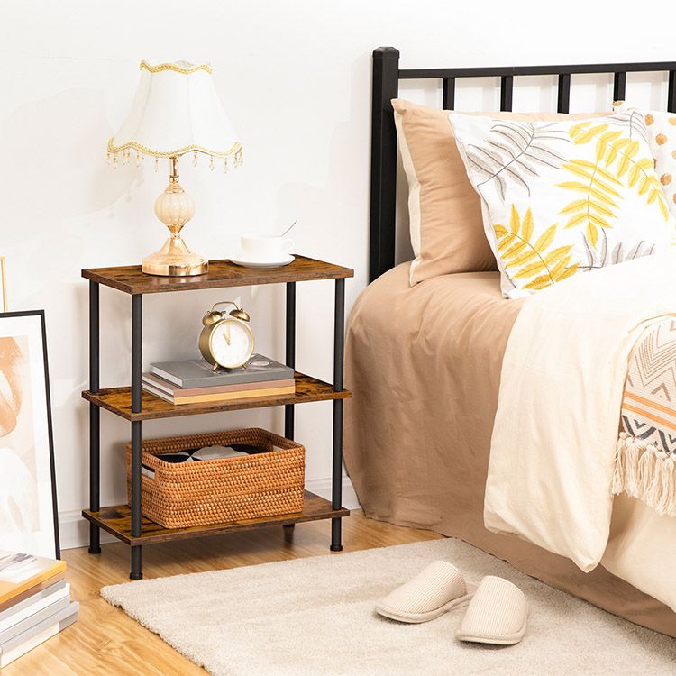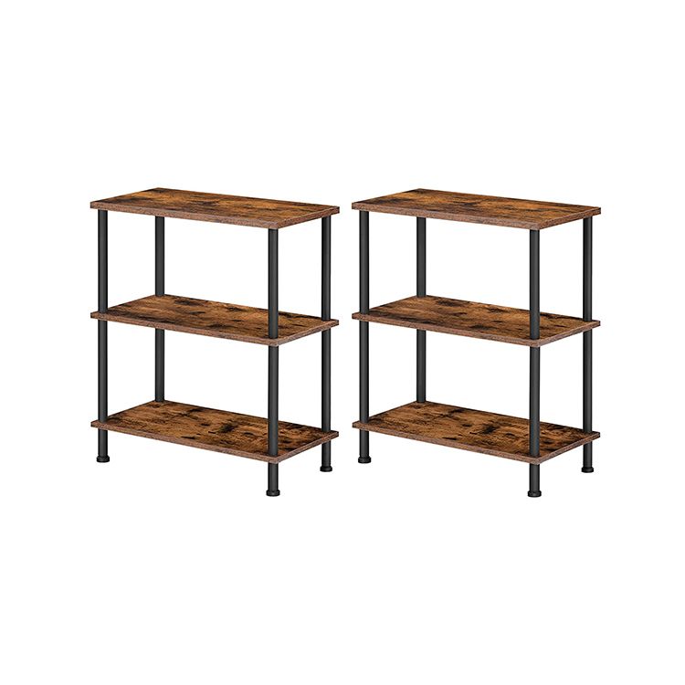 Zijtafels Set van 2, 3-laags stapelbare eindtafel, stabiele nachtkastje voor kleine ruimte in slaapkamer, woonkamer, gang, gemakkelijke montage, industriële stijl, rustieke bruine
