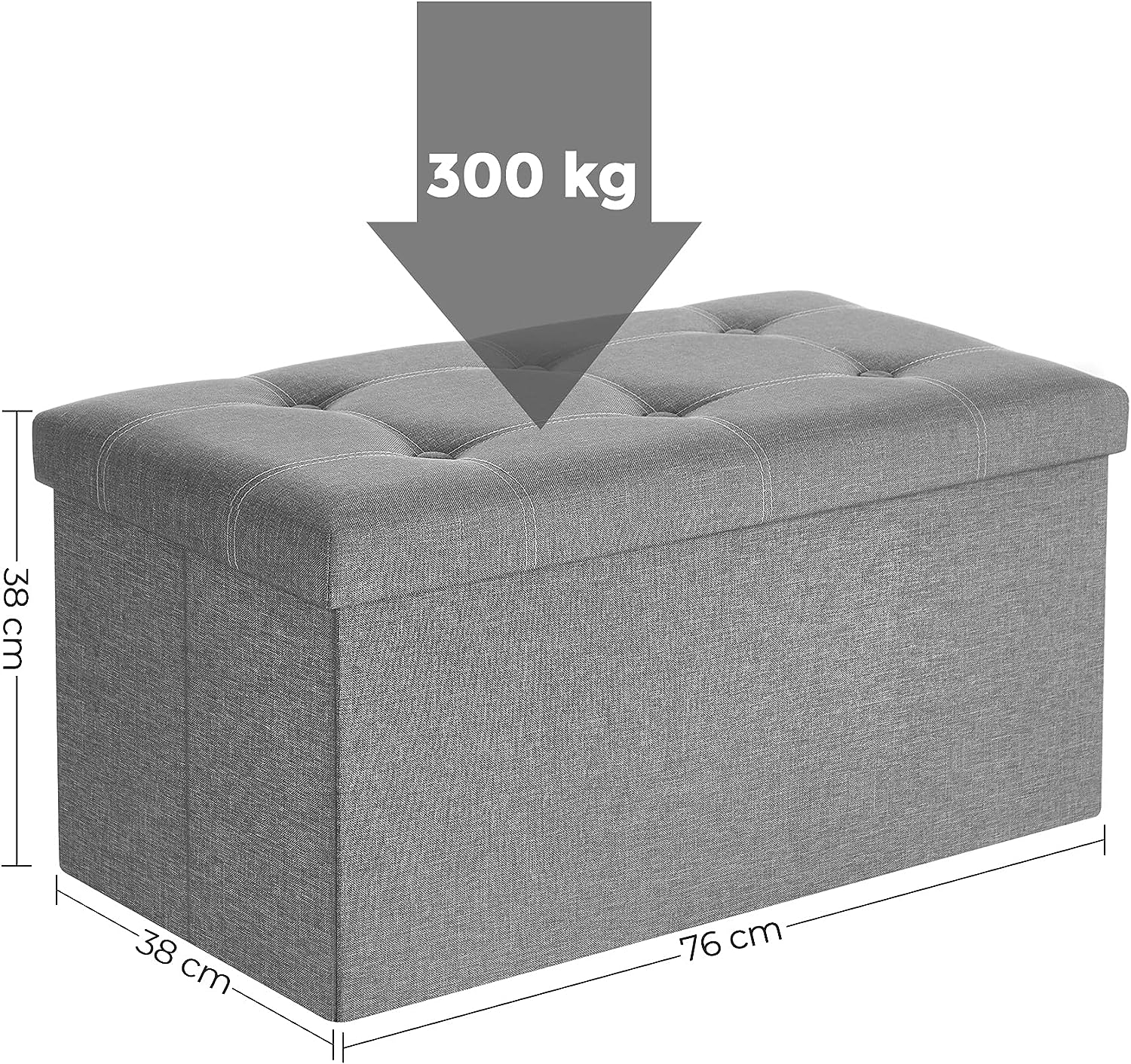 Zitbank Met Opbergruimte, Zitkist, Zitkruk, Opvouwbaar, 76 X 38 X 38 Cm, Bekleding Van İmitatie Linnen, Voor Slaapkamer, Hal, Woonkamer, Lichtgrijszi
