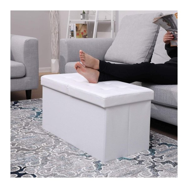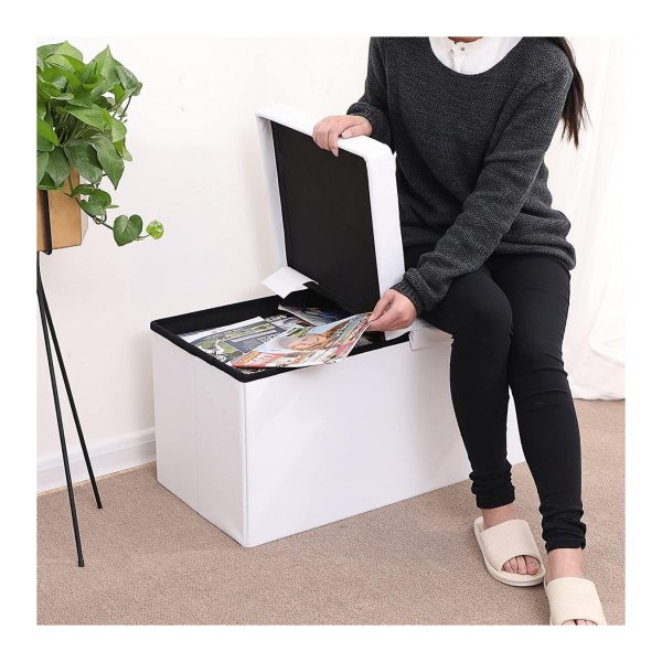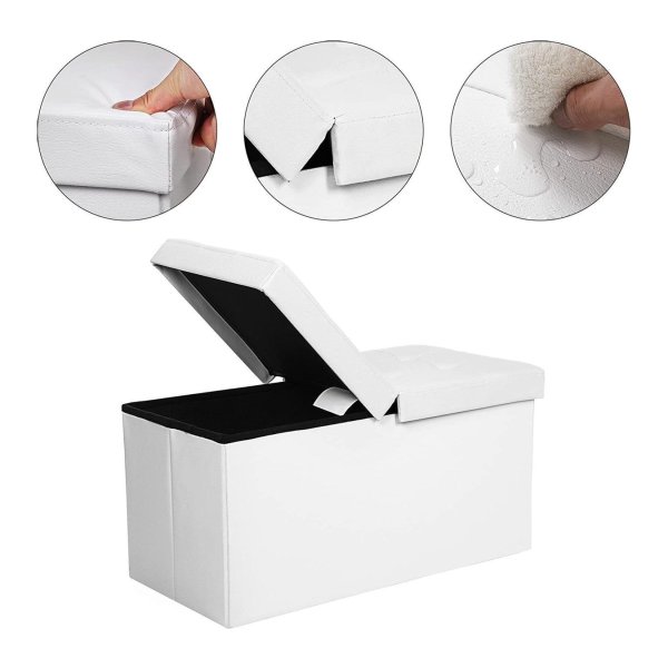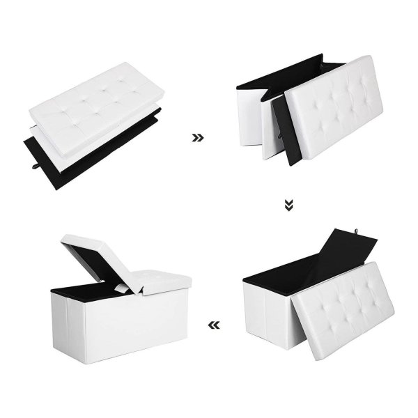 - Opvouwbaar design: Het scharnierende deksel van deze zitbank kan van beide kanten worden geopend, waardoor je snel en gemakkelijk voorwerpen kunt opbergen of eruit kunt halen zonder het hele deksel te verwijderen. Wanneer de bank niet in gebruik is, kan deze eenvoudig worden opgevouwen en opgeborgen om ruimte te besparen.