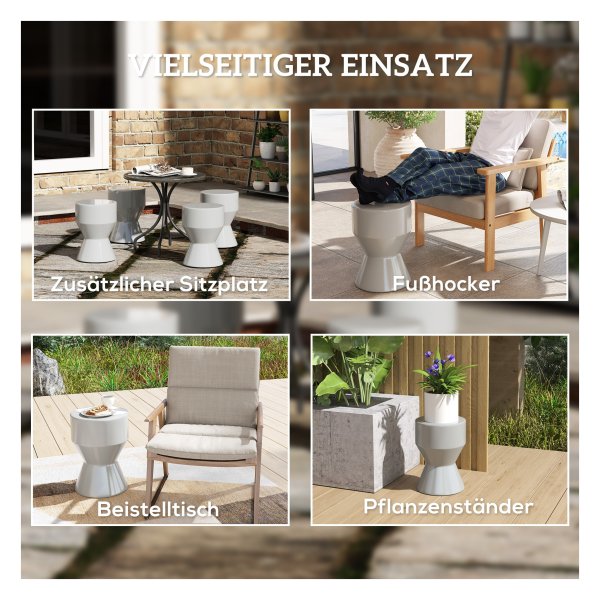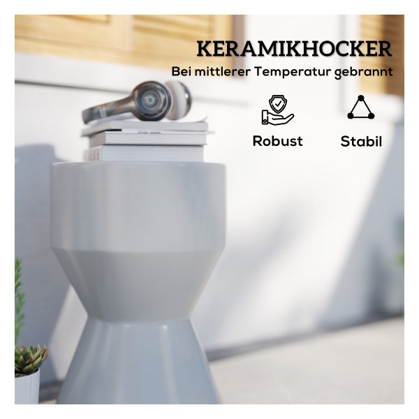 Der Outsunny Keramik Gartenhocker ist elegant, robust und vielseitig. Mit seinem modernen Design passt er perfekt in jeden Raum. Leicht zu reinigen und belastbar bis zu 120 kg, ist dieser Zithocker ideal als Sitzgelegenheit, Fußstütze oder Pflanzenständer.