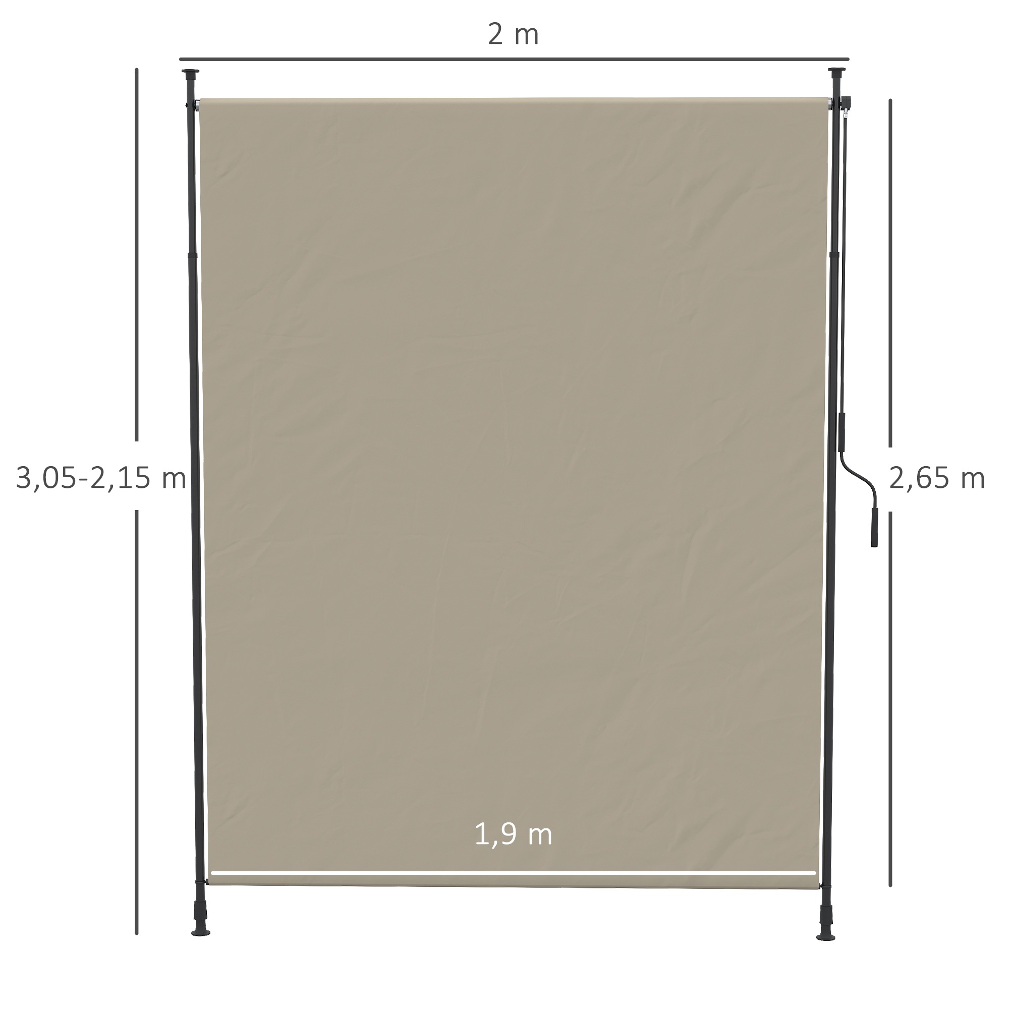 Schützen Sie Ihren Entspannungsbereich mit der deckenhohen Outsunny Terrassenmarkise. Die manuell einziehbare Seitenmarkise aus robustem Aluminium und Metallrahmen bietet ausgezeichneten UV-Schutz. Mit verstellbarer Höhe von 215-305 cm und einziehbarer Länge von 0-270 cm.