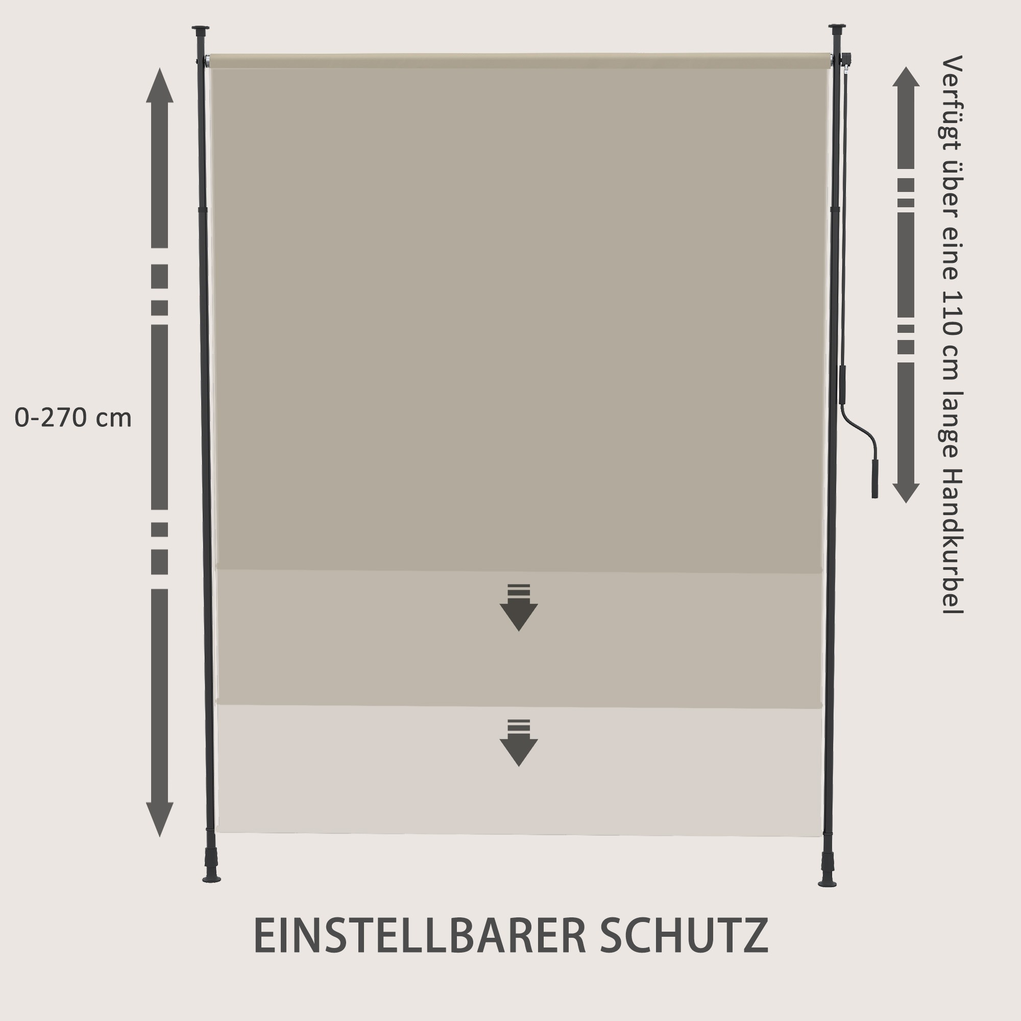 - ✔ Hoogwaardig en duurzaam zonnescherm in zandkleur